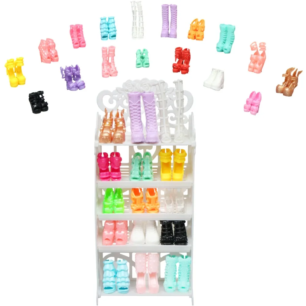23 предмета = 1 белая полка для обуви + 22 пары сандалий на высоком каблуке в разных стилях повседневная обувь аксессуары для кукольного домика Барби