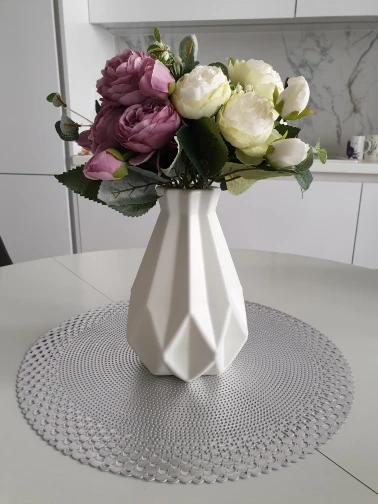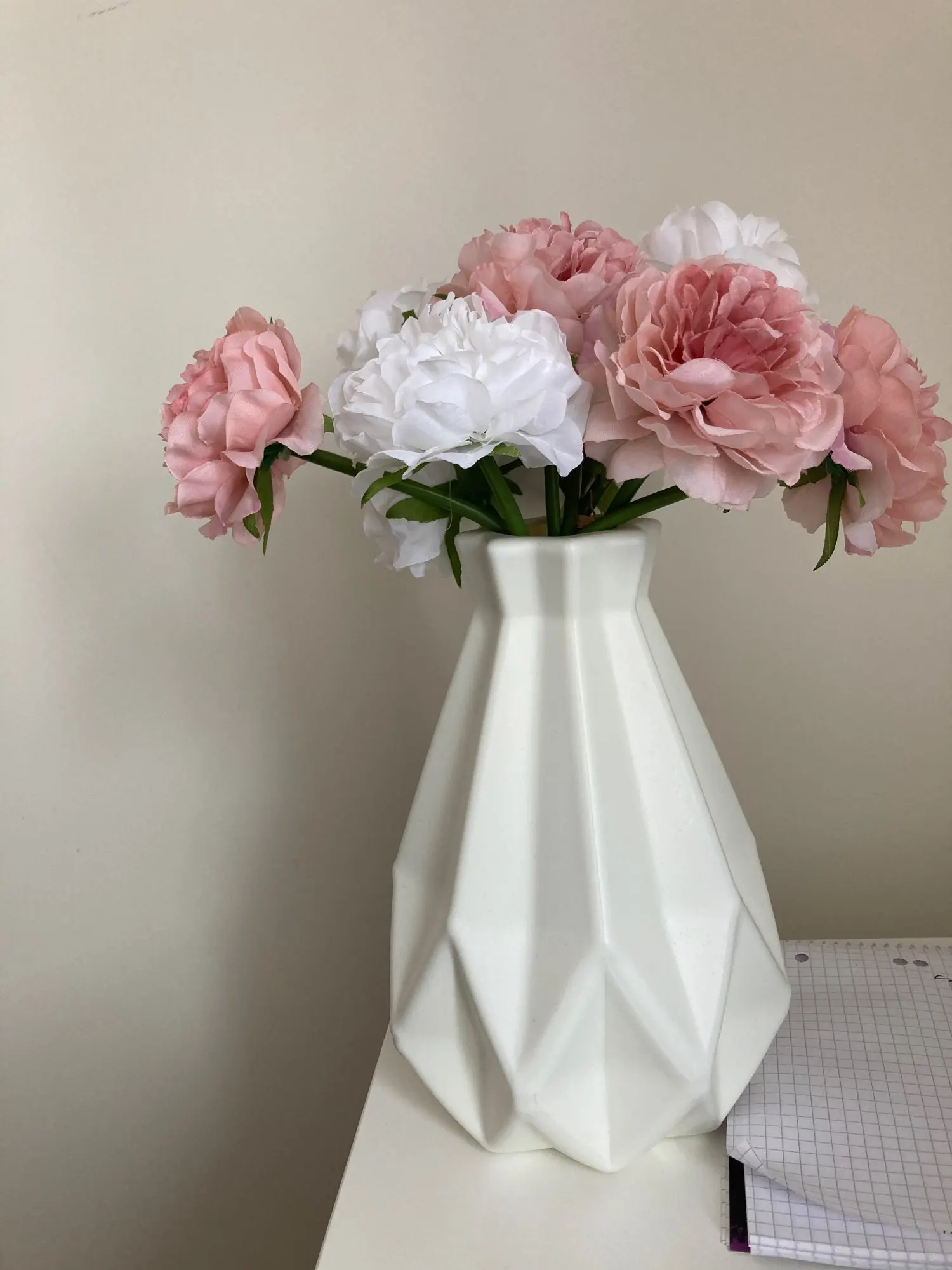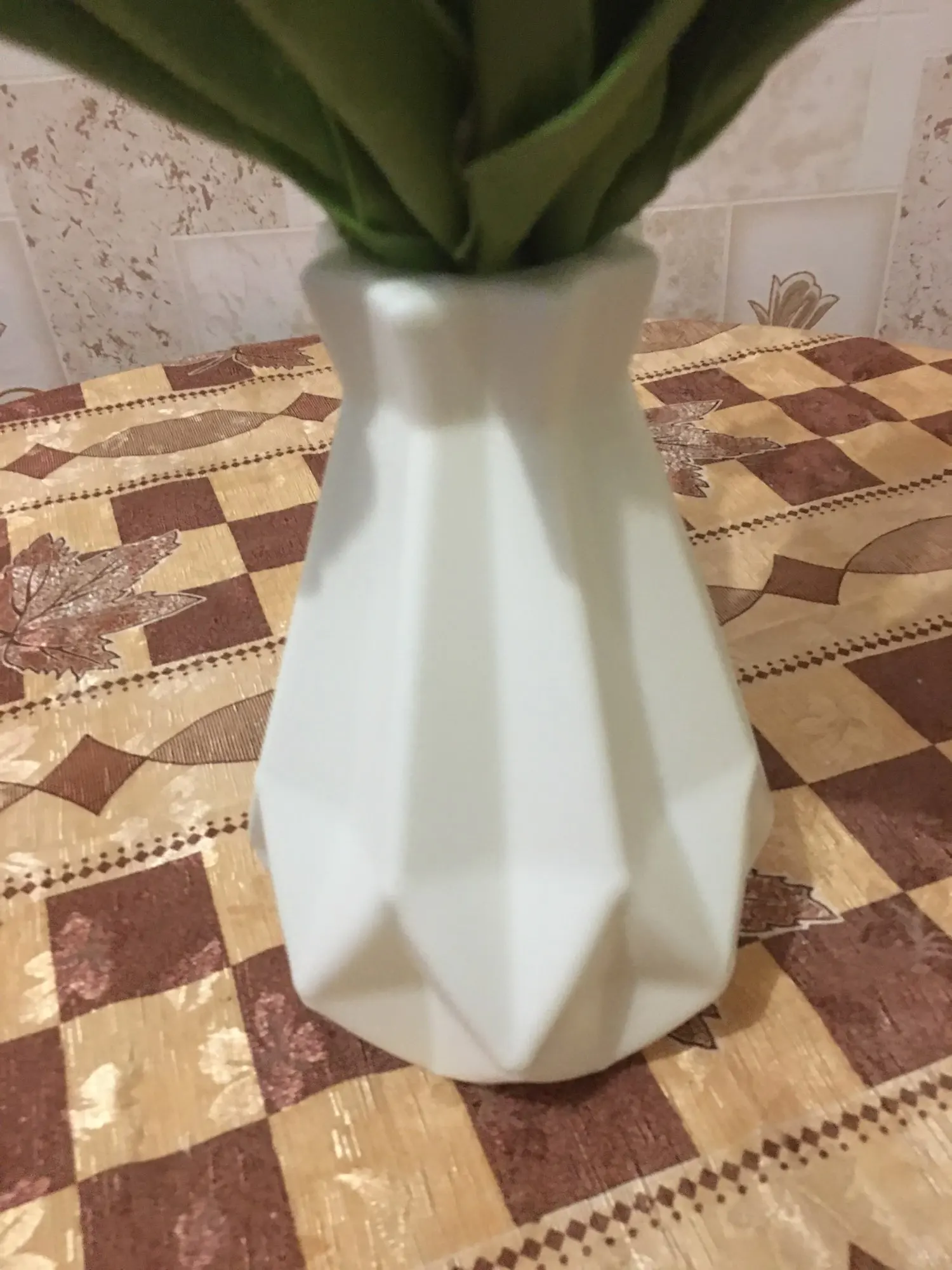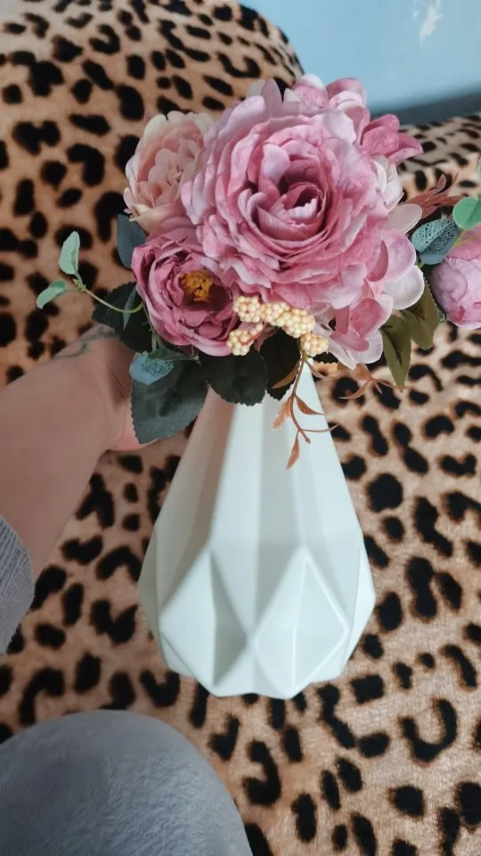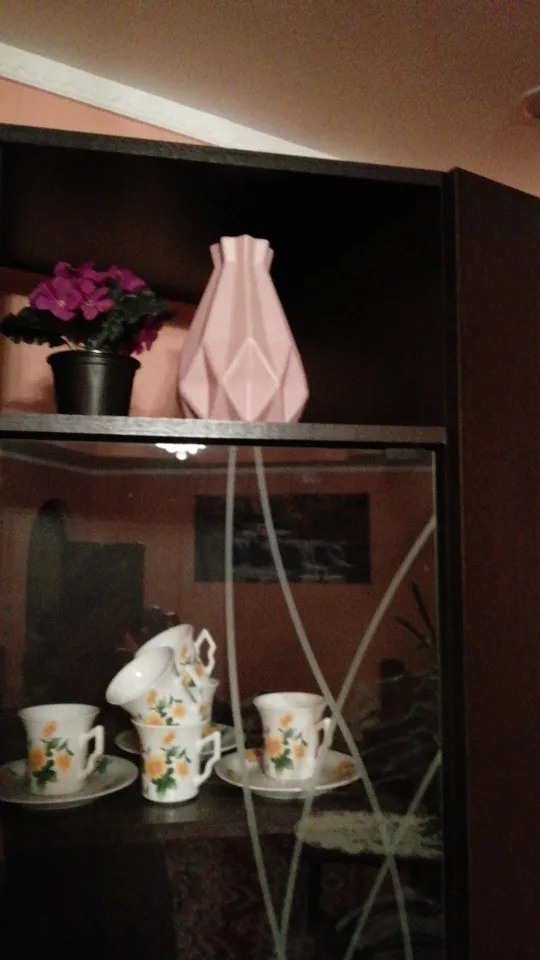 Пластиковая ваза, надеюсь не будет падать с цветами, внешне симпатичная