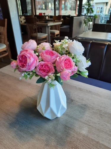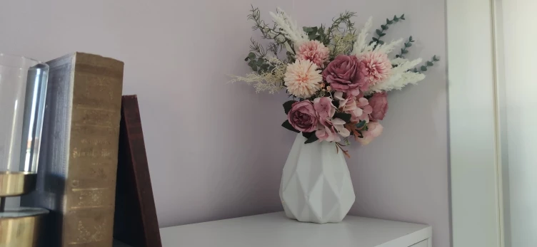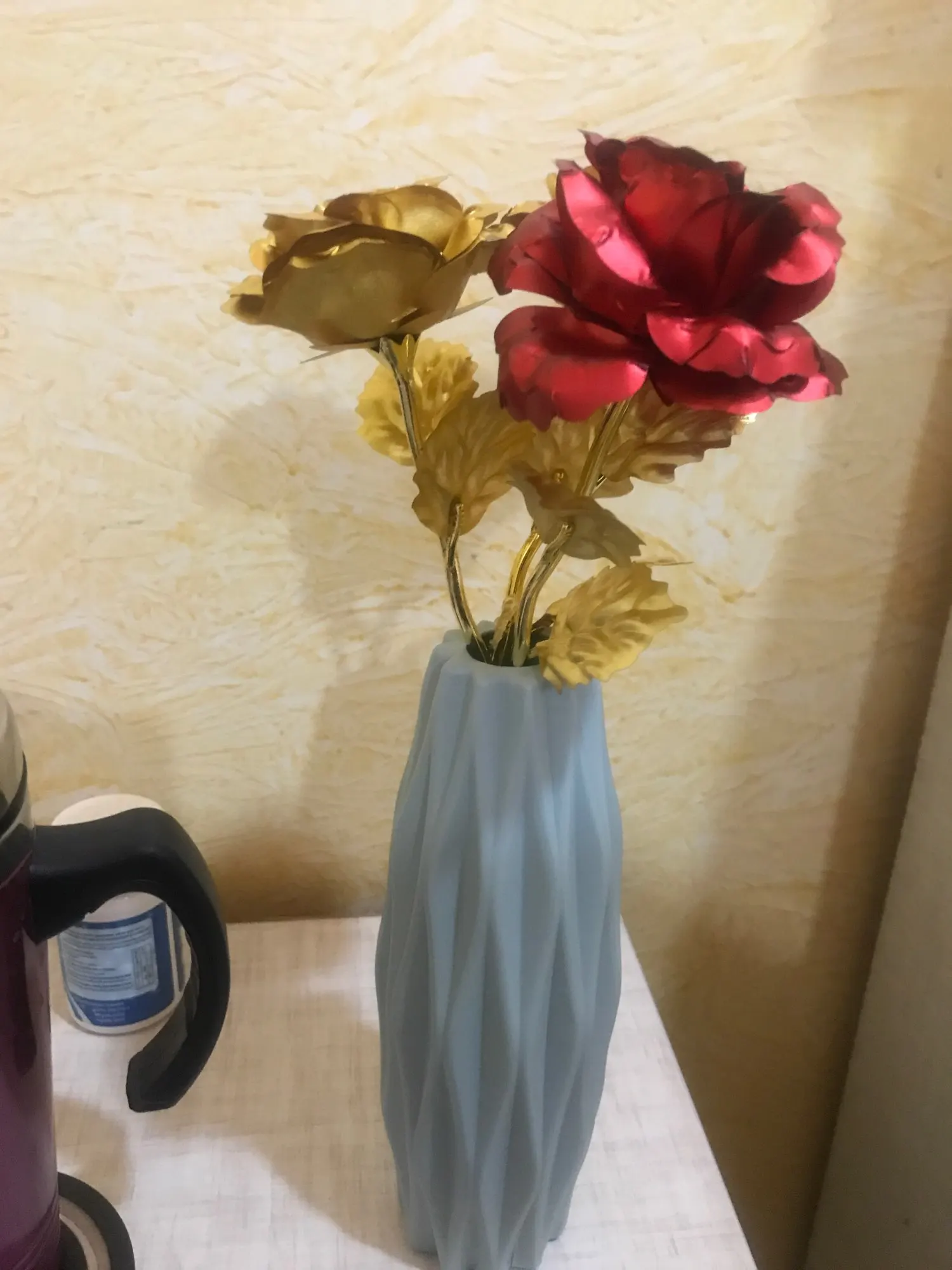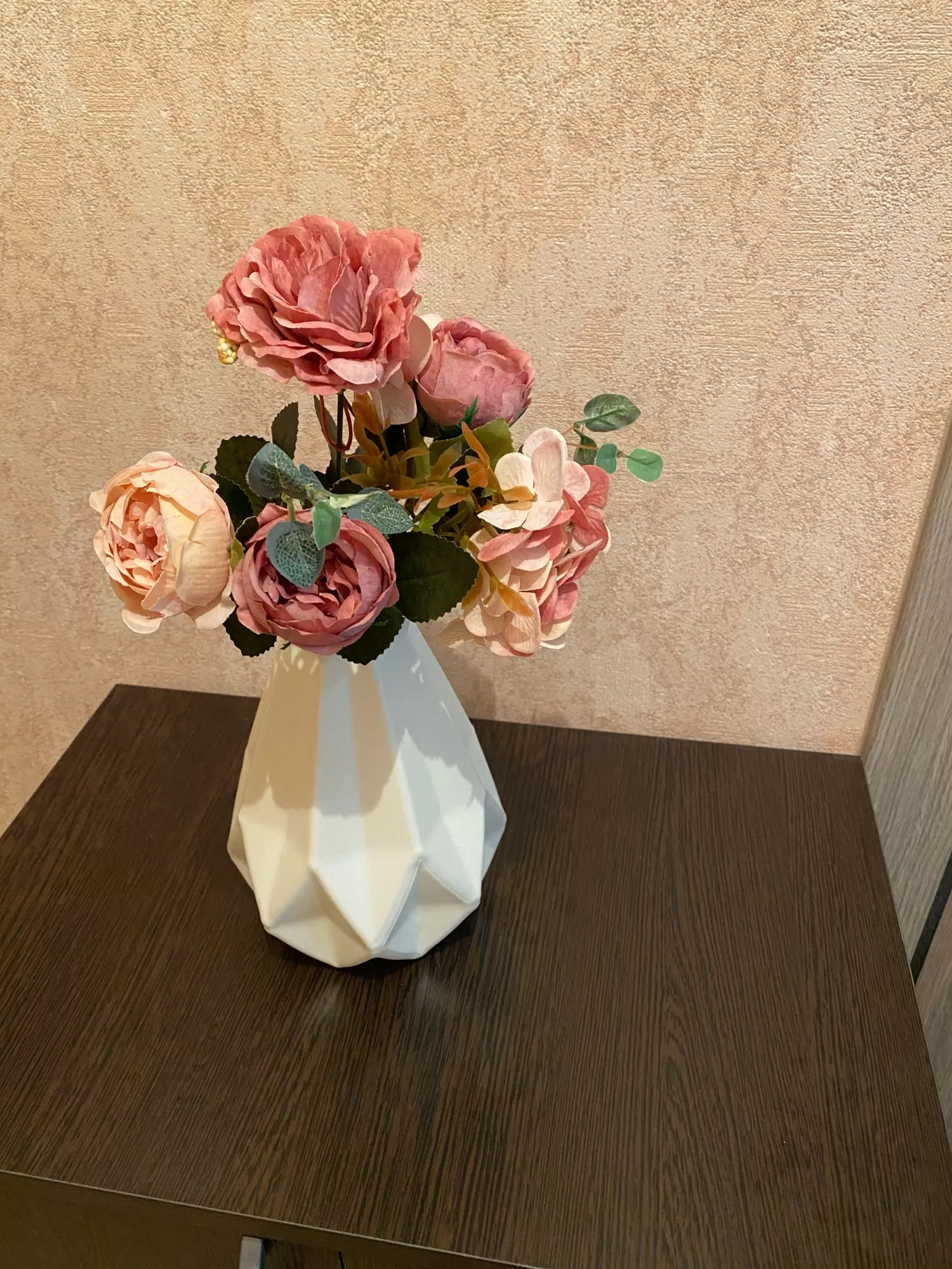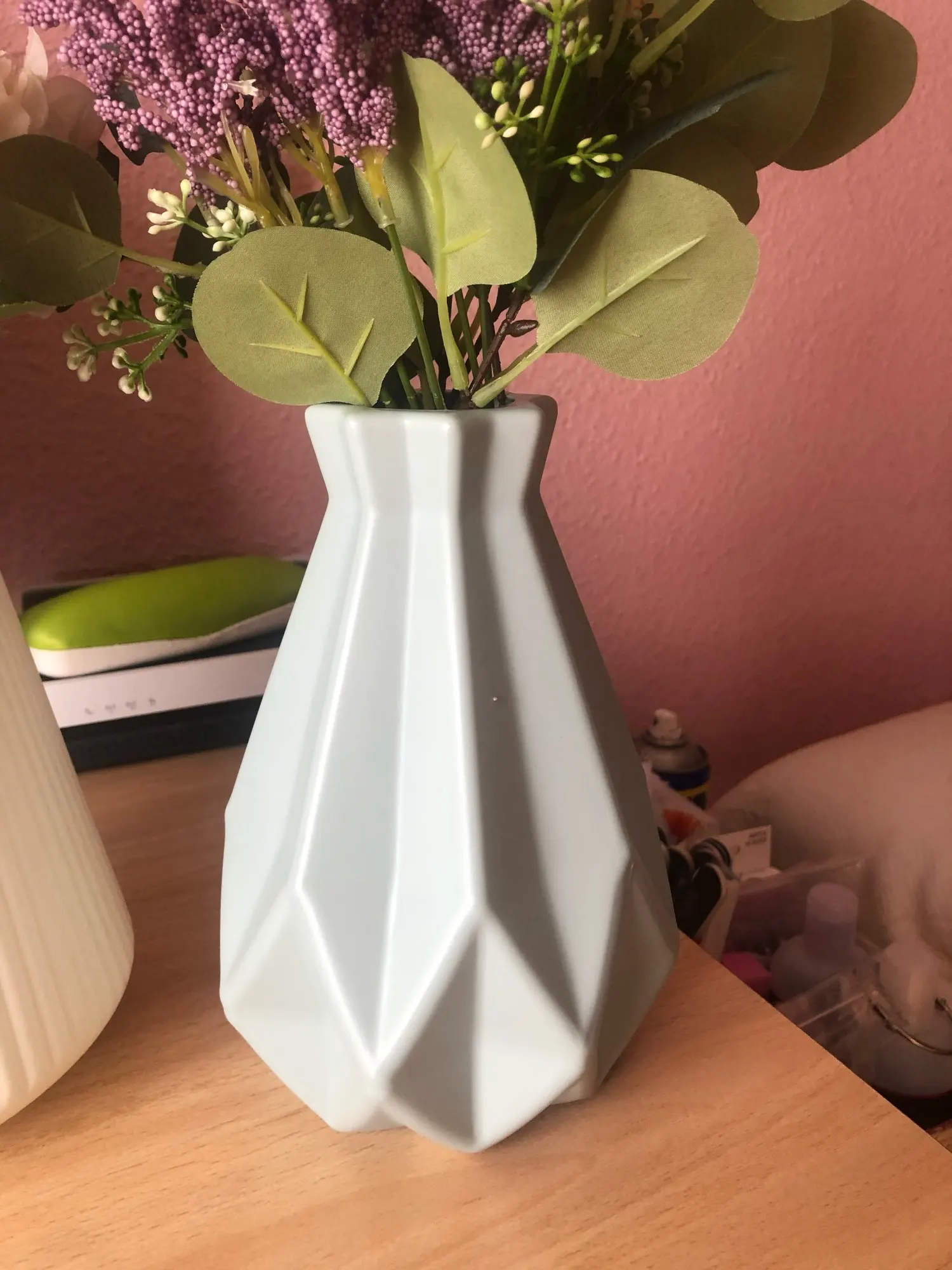 Пластиковая ваза, надеюсь не будет падать с цветами, внешне симпатичная