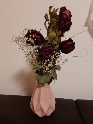немного помятая в одном месте, но не сильно видно. красивая, тяжёлые цветы не выдержит, а вот сухоцветы самое то!