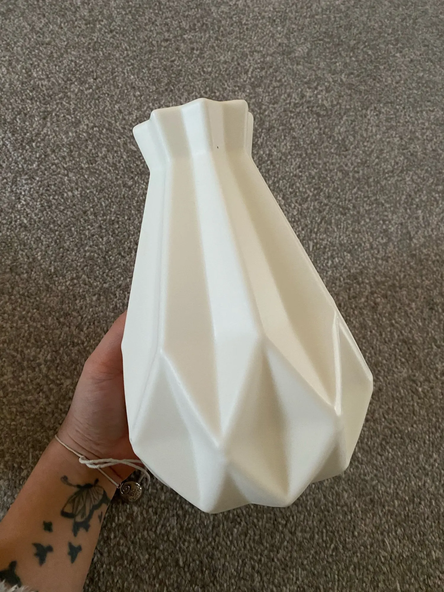 Очень красивая ваза, очень легкая и хорошо Обработанная. Довольно быстрая доставка.