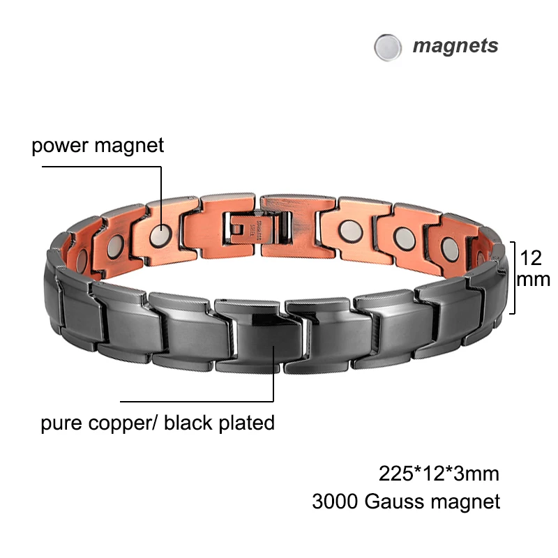 Магнитный браслет из чистой меди для женщин, энергетический металлический медный магнитный браслет с артритом, черное покрытие, ручной браслет-цепочка
