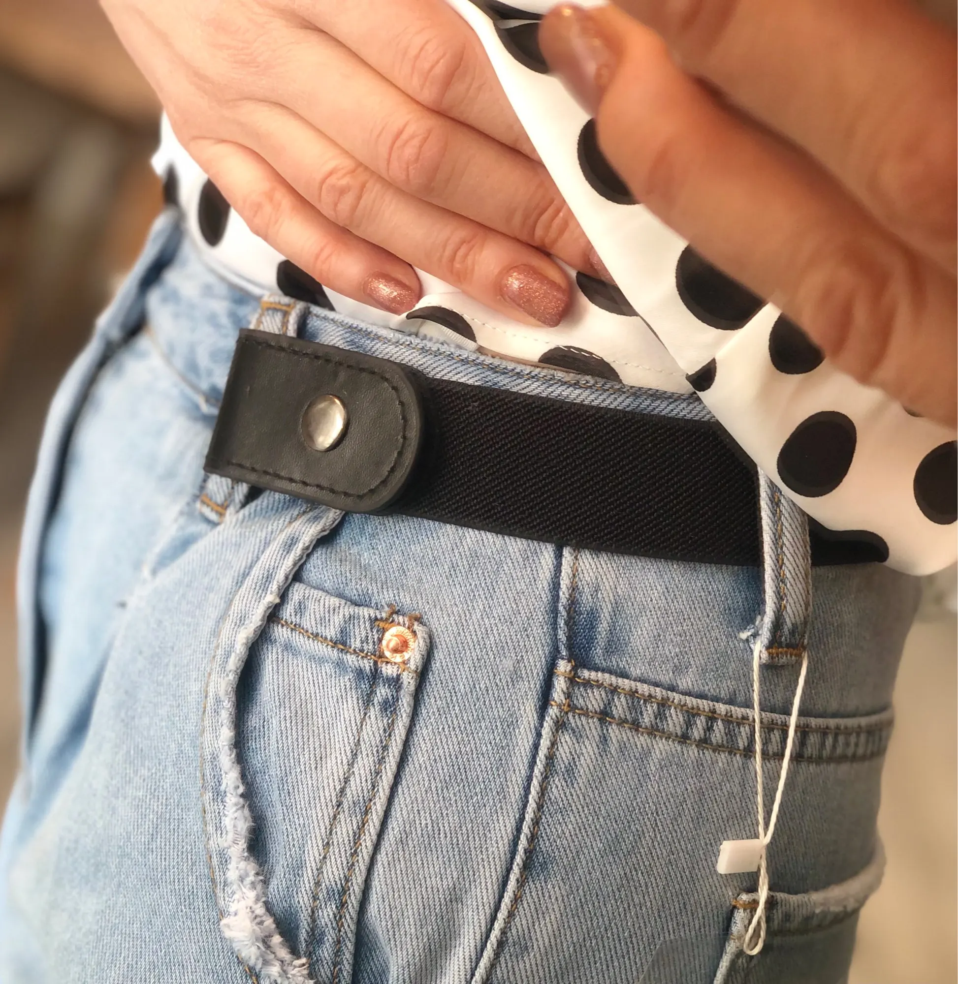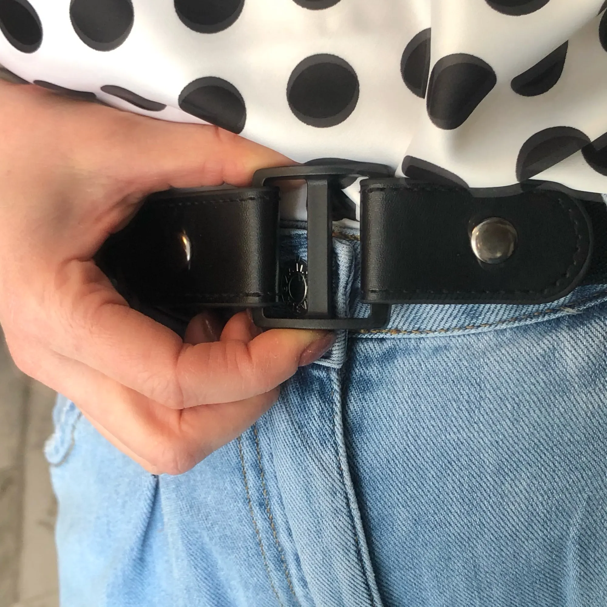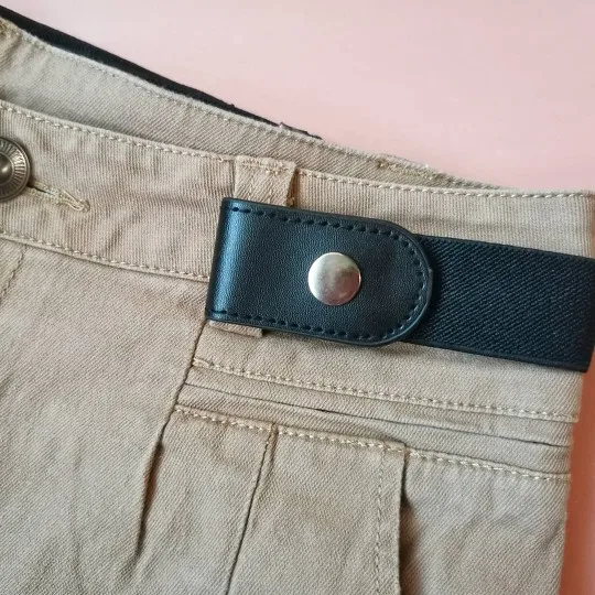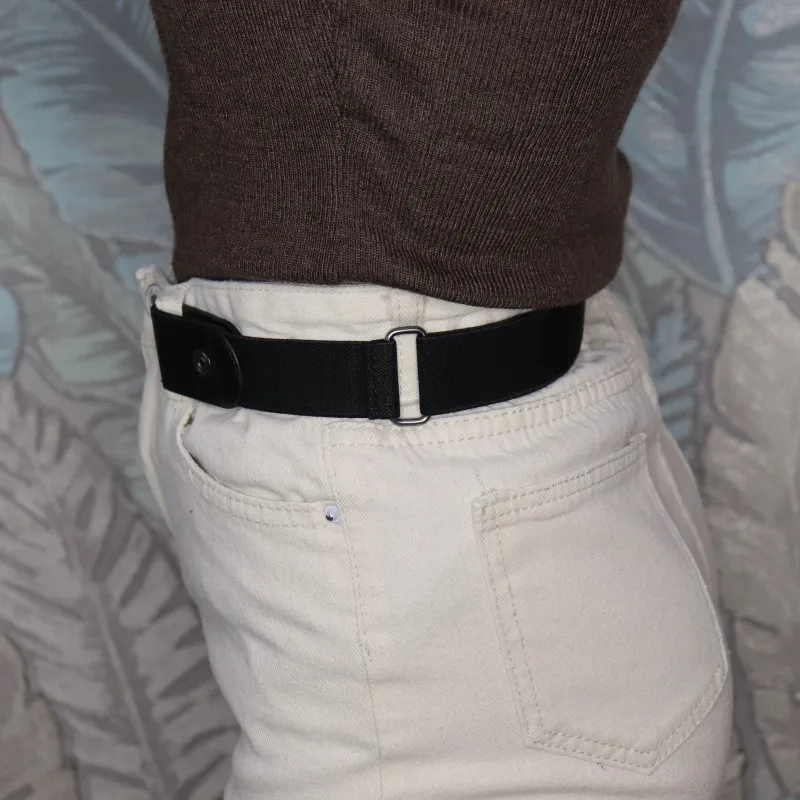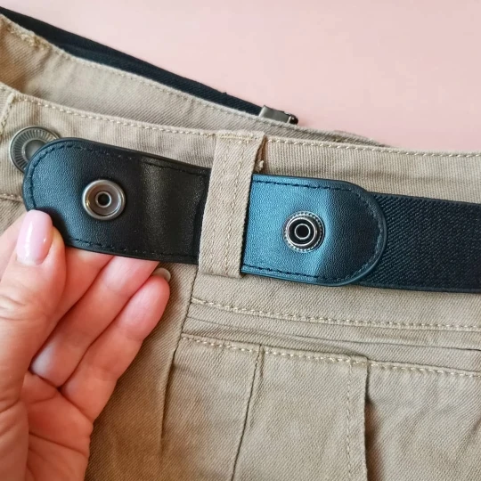 Эластичный ремень без пряжки мягкий, удобный и легкий в носке. Пояс можно застегивать на петлях брюк с помощью переплетающейся застежки, что уменьшит напряжение на талии и обеспечит комфортное ношение. Длина ремня регулируется путем скольжения металлической пряжки. Это очень удобно, я в восторге! Ремень нигде не давит, при этом отлично держит, его не нужно расстёгивать каждый раз, когда хочешь снять джинсы - надела, отрегулировала длину и всё!