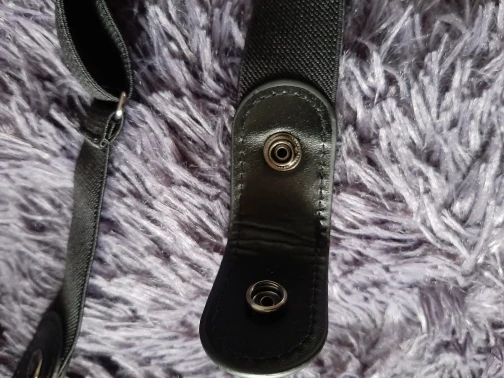 Ремень из PU материала и резинки без пряжки. Держится при помощи металлических кнопок по бокам. Выполнен качественно, строчки ровные, нитки не торчат. Ремень подошёл на талию 63 см, но его также можно отрегулировать. Смотрится необычно.