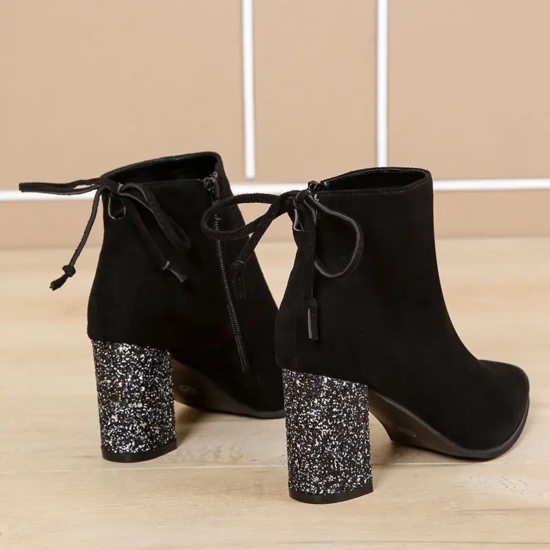2020 осенние женские ботинки черные ботильоны с острым носком модел...