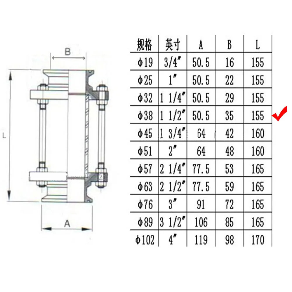 1,5 "38 мм Tri Clamp Clover Sanitay смотровое стекло с диоптриями, ...