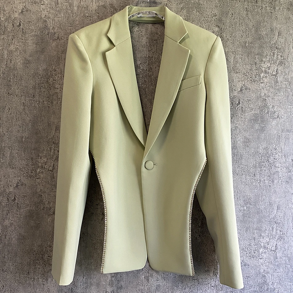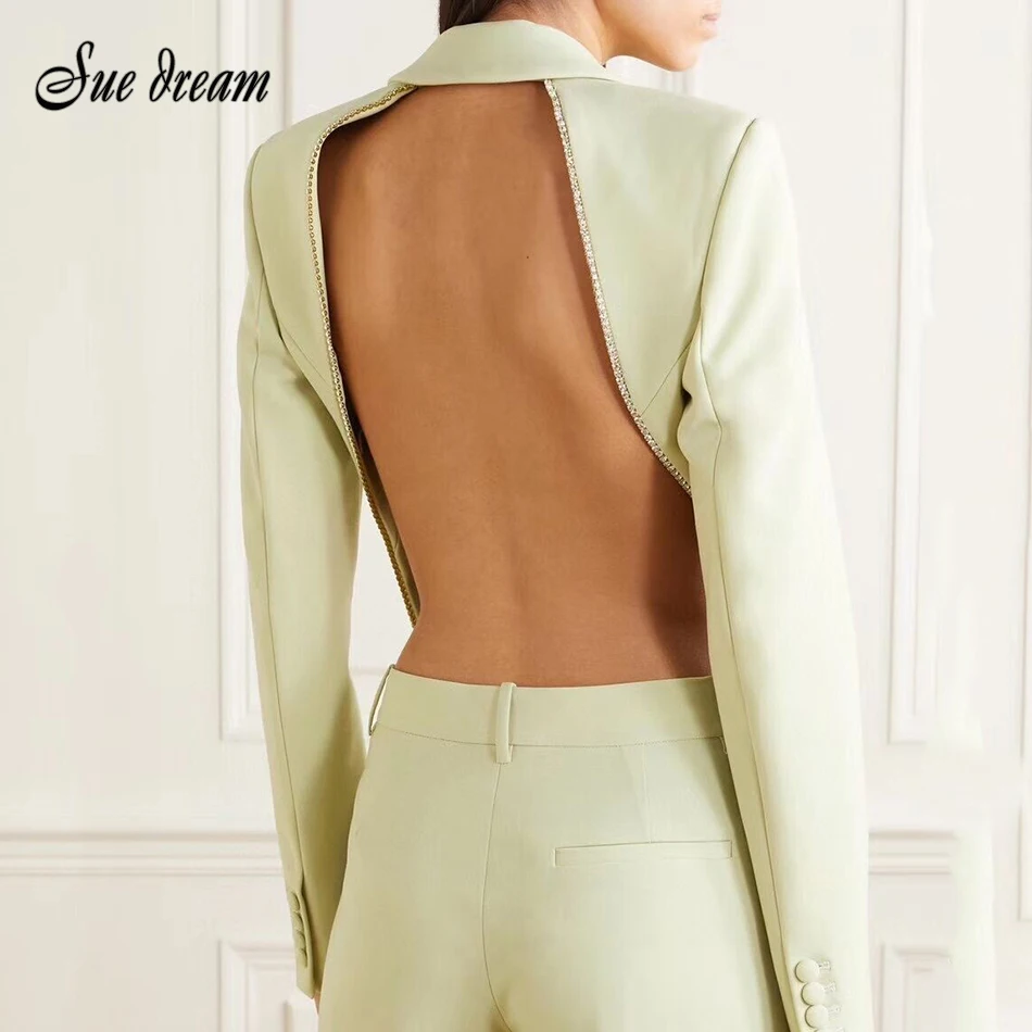 2021 летнее новое модное сексуальное ажурное Клубное платье с открытой спиной, украшенное стразами, длинными рукавами, V-образным вырезом, пальто на одной пуговице