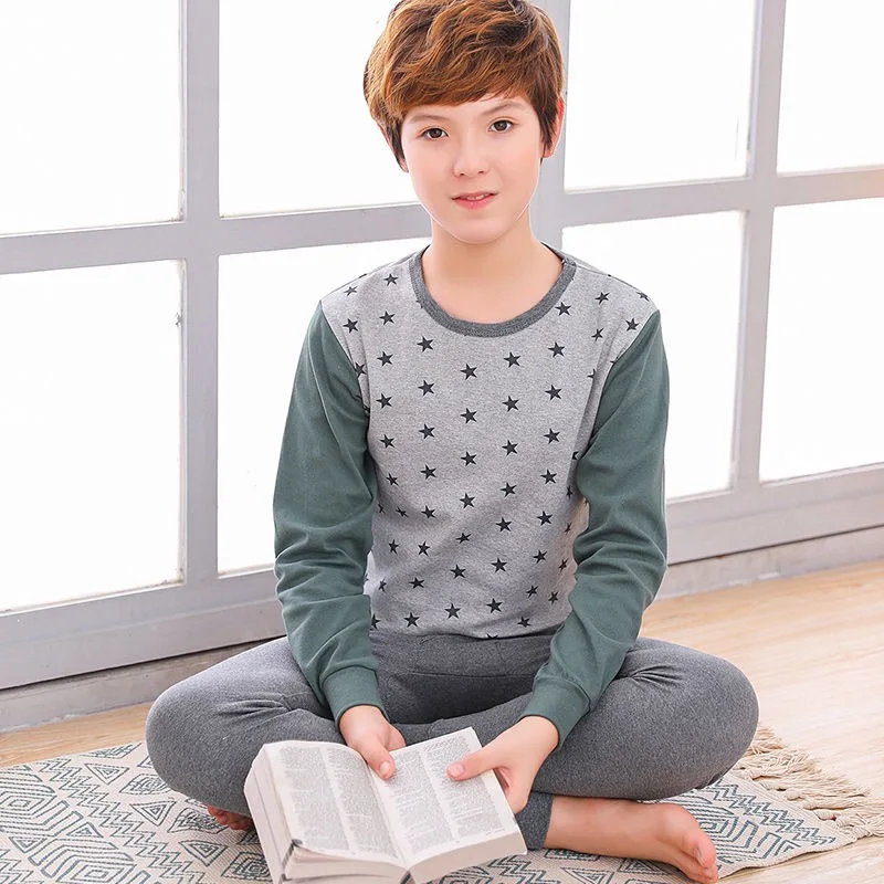 Пижама с длинным рукавом для подростков, 100% хлопок, пижама, компл...