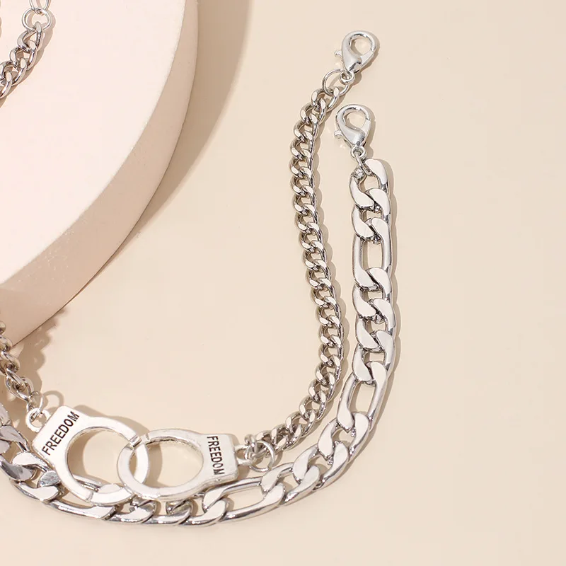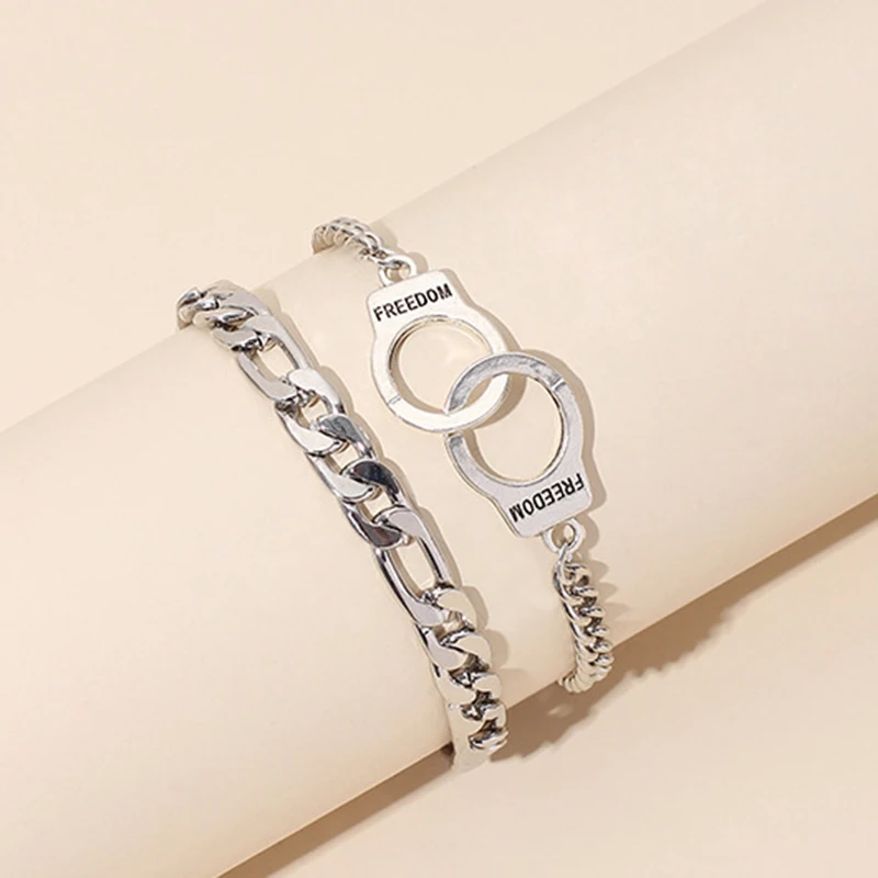 2 шт./компл. панк цепи наручники свобода Письмо Браслеты и браслеты для женщин Серебристые цепи друзей ножные браслеты Пляж ювелирные изделия E002