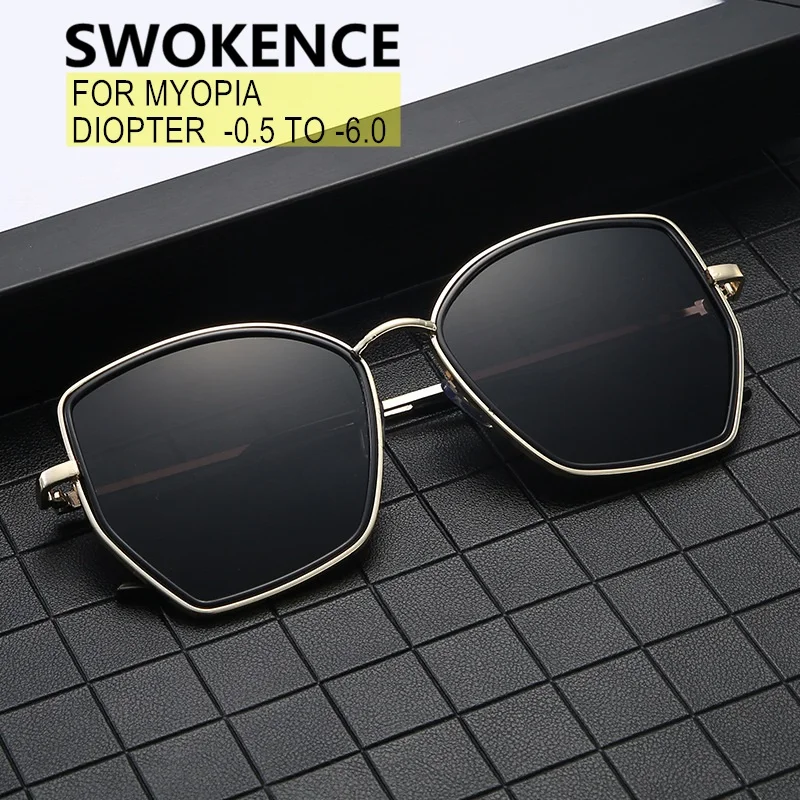 Солнцезащитные очки SWOKENCE SA11 для мужчин и женщин, модные, при близорукости, с диоптриями, в многоугольной оправе из сплава, очки для близоруких