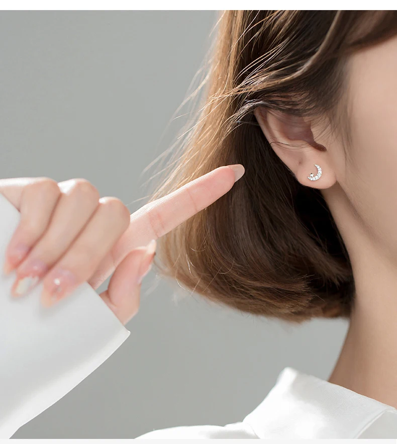 Серьги-гвоздики женские из серебра 925 пробы, со звездами, луной, планетой