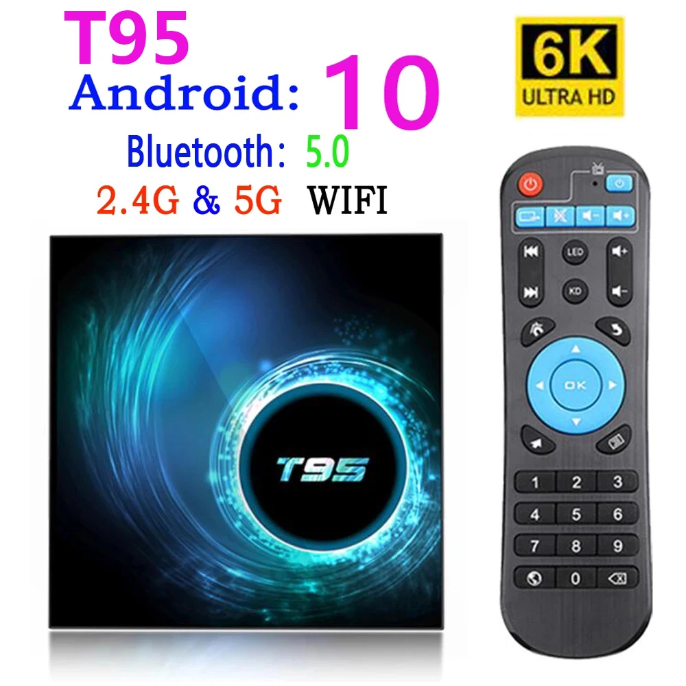 ТВ-приставка T95, Android 10, 2,4 ГГц и 5G Wi-Fi, HD 6K, голосовой помощник Google, Pk H96 Max