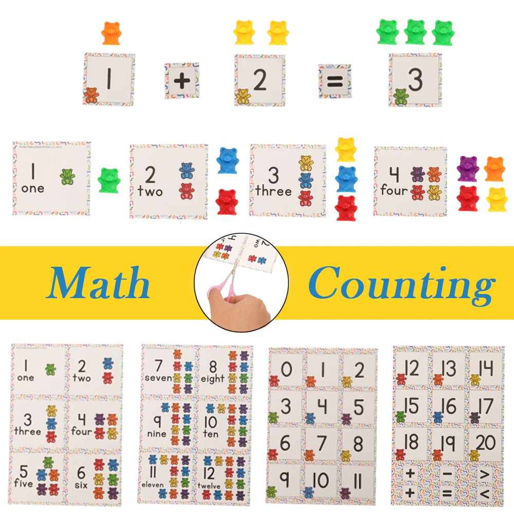 Детские математические игры, подсчет медведей, Монтессори, познавание цифр, радужная игра, развивающие игрушки для детей, подарок для малышей