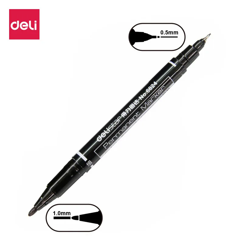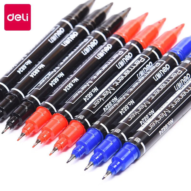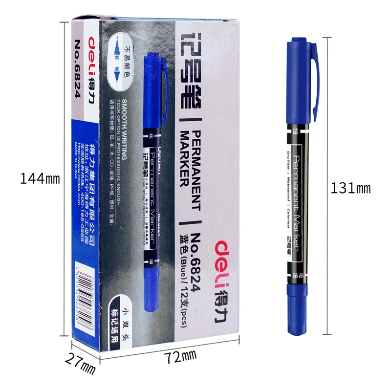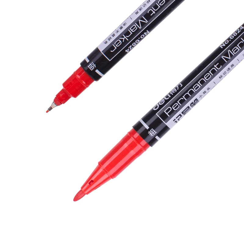 Deli 6824 Водонепроницаемая толстая и тонкая маркировочная ручка с двойной головкой, Быстросохнущий Перманентный масляный маркер, художественная ручка-крючок, офисные принадлежности