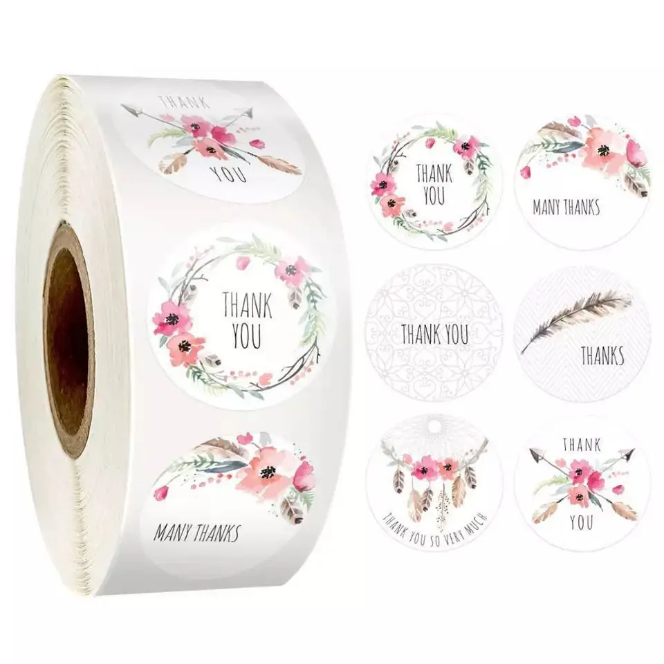 500 шт.рулон, спасибо за дизайн, цветы, спасибо, наклейки на Рождес...