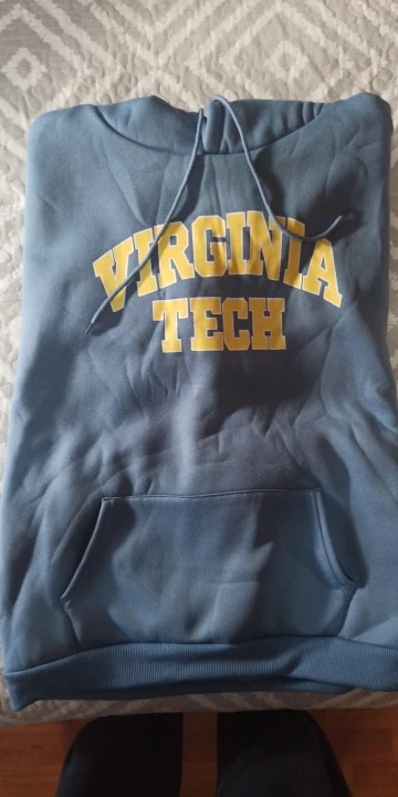 На фотографиях кажется толстым, но это не так. Буквы имеют другой тон, светло-желтый. Размер: я получил L, но я вижу, что он немного маленький, мне больше нравятся толстовки.