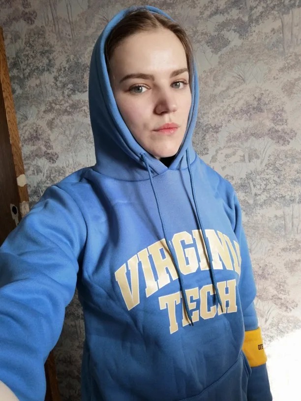 До липецкой области шло 3 недели. Толстовка мне понравилась, цвет насыщенный. Но мне кажется что со временем появятся катышки. Внутри небольшой теплый флис. На свой размер 44-46 заказала размер М, мне впритык, надо было заказать на размер больше. Капюшен оооочень маленький, надевать его не буду