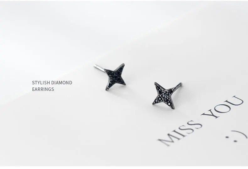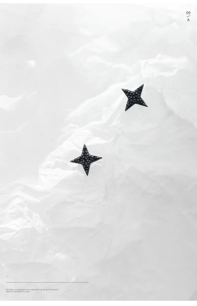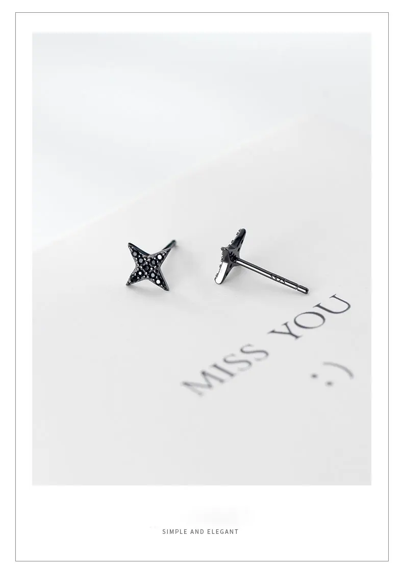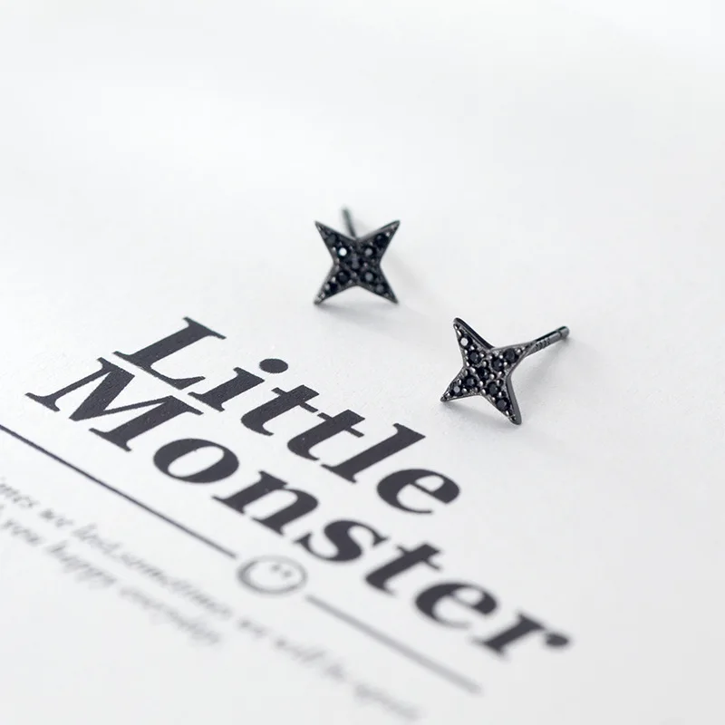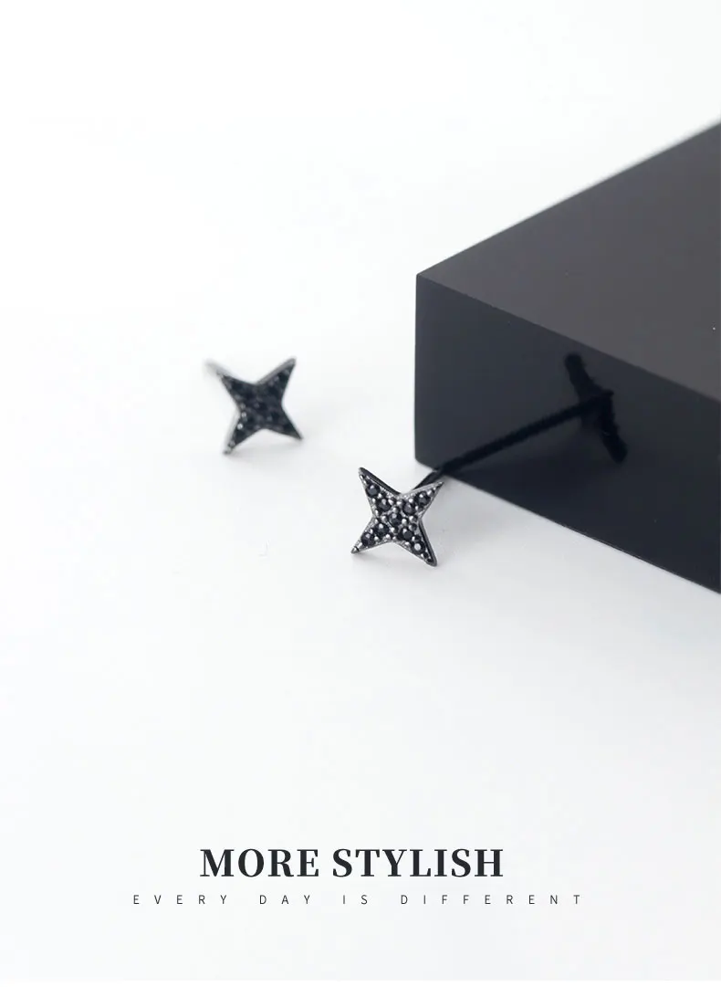 Название: трендовые серьги-гвоздики с четырьмя острыми звездами, 925 пробы серебряные ювелирные изделия, серебряные серьги Размер: Около 0,8 см Цвет: черный Затычки для ушей: с 4 пластиковыми затычками для ушей Посылка: пластиковая коробка (3,5 см * 3,5 см * 1,8 см) в одном пузырчатом пакете (13 см * 15 см)