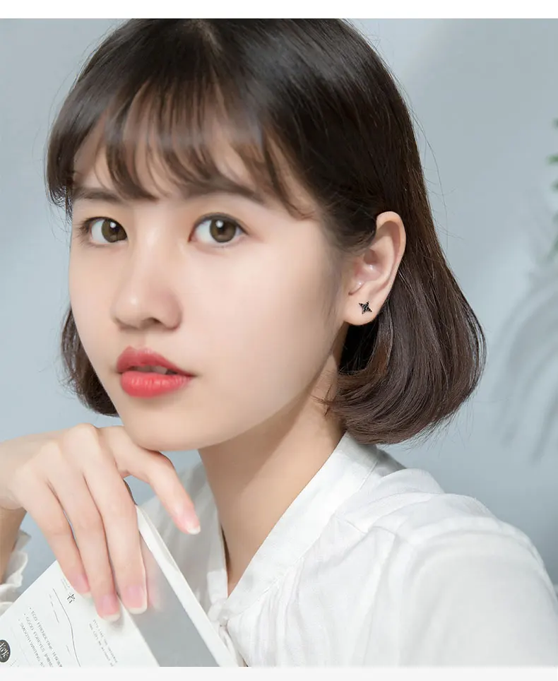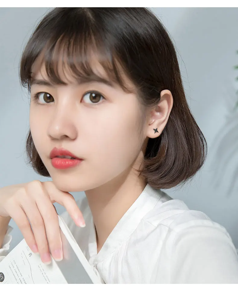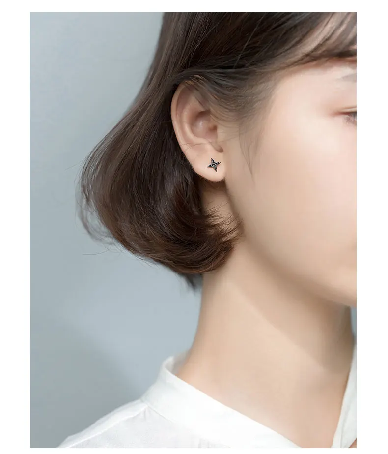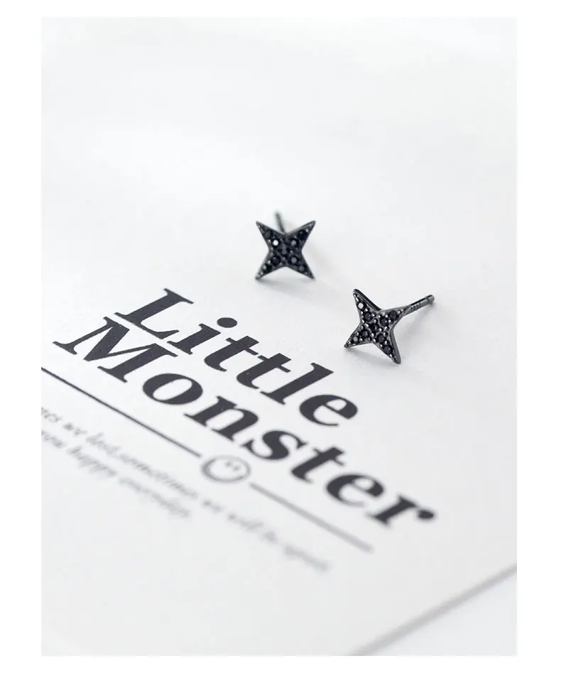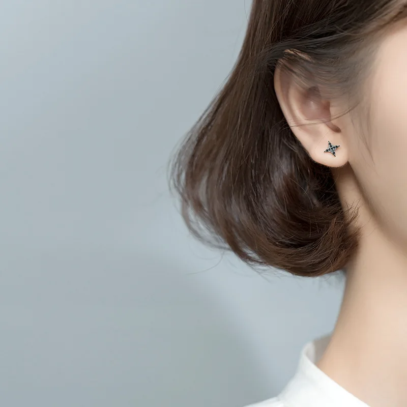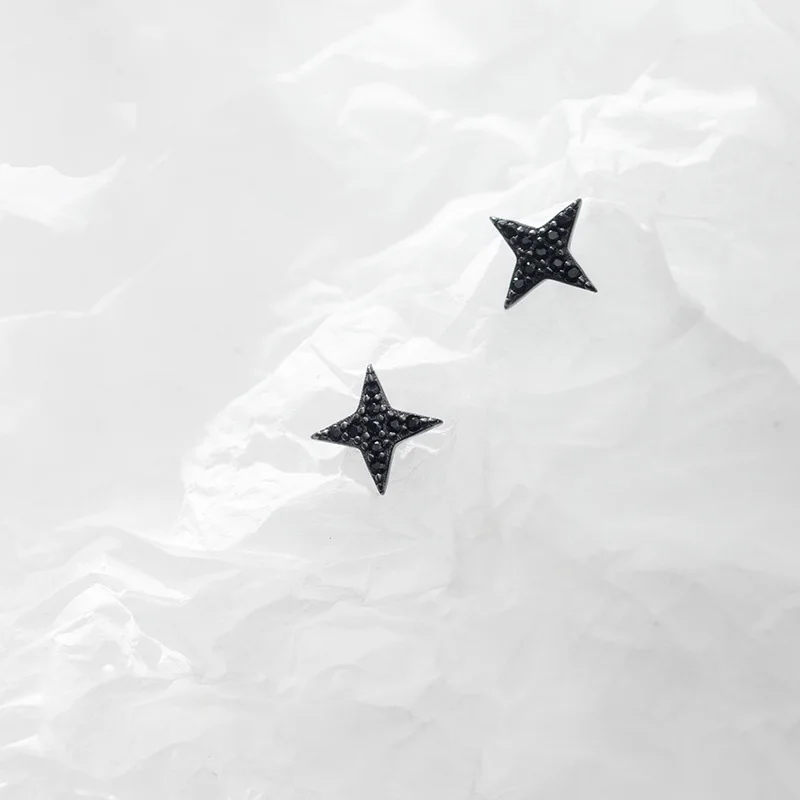 Название: трендовые серьги-гвоздики с четырьмя острыми звездами, 925 пробы серебряные ювелирные изделия, серебряные серьги Размер: Около 0,8 см Цвет: черный Затычки для ушей: с 4 пластиковыми затычками для ушей Посылка: пластиковая коробка (3,5 см * 3,5 см * 1,8 см) в одном пузырчатом пакете (13 см * 15 см)