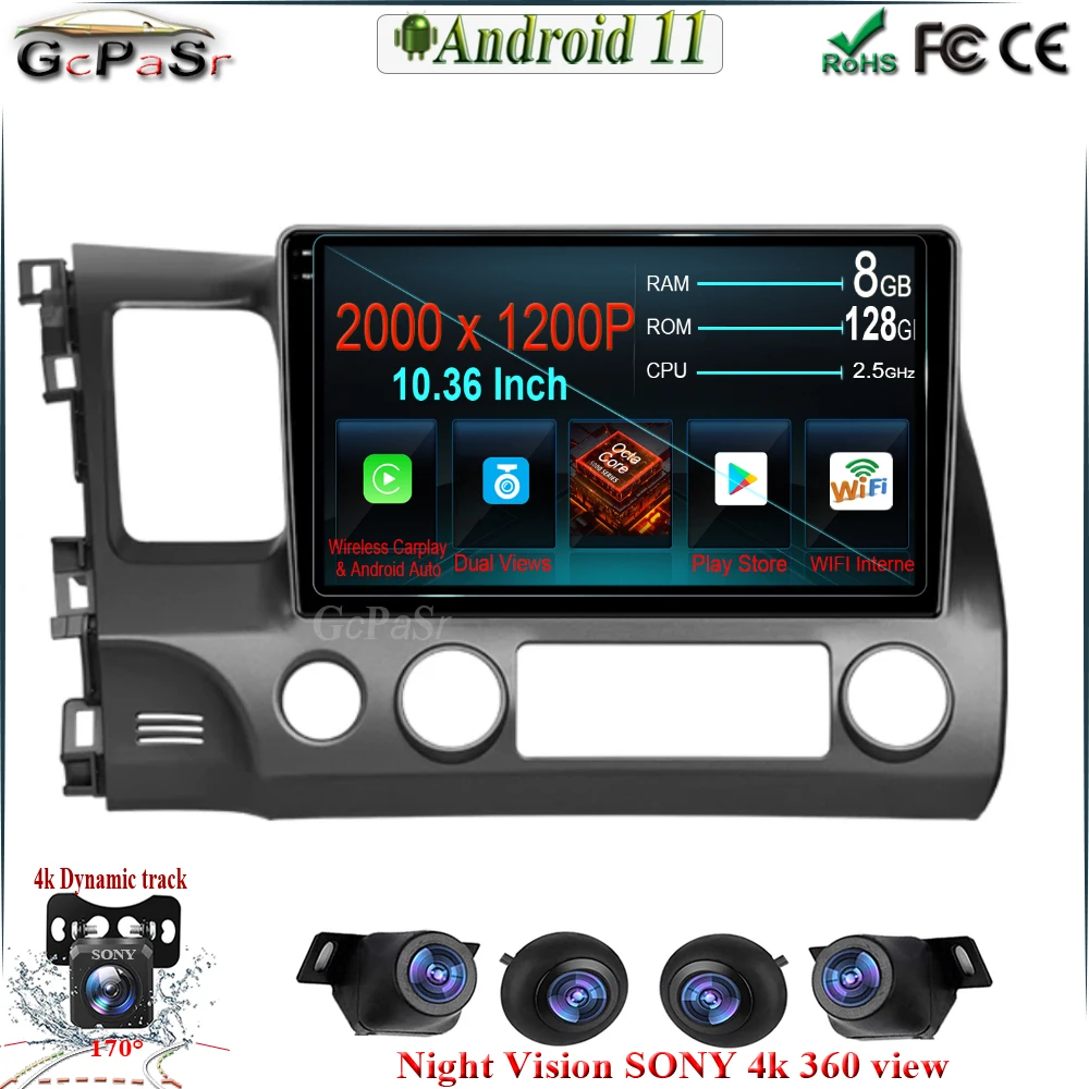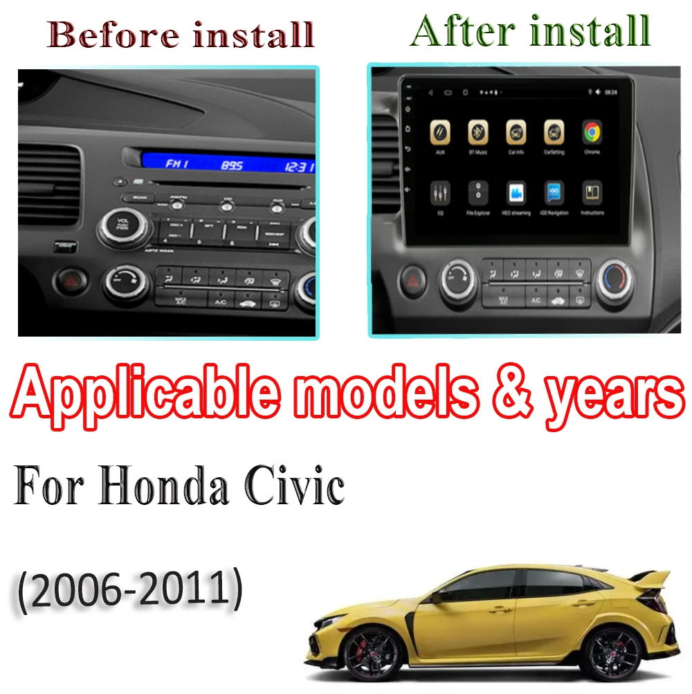 Android11 для Honda Civic 2006 2007 2008 2009 2010 2011 Автомобильный радиоплеер Автомобильный мультимедийный видеоплеер GPS-навигатор BT WIFI