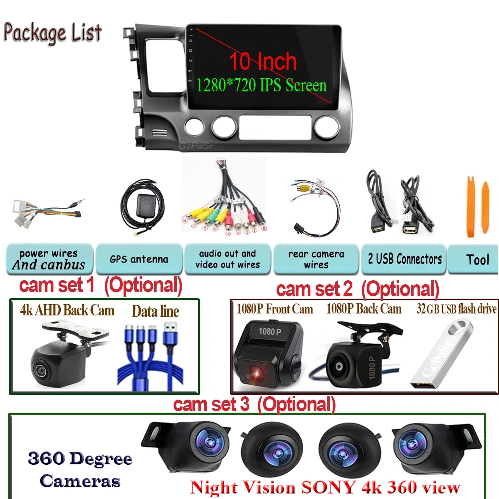 Автомобильный стерео Мультимедийный проигрыватель 360, камера для H...