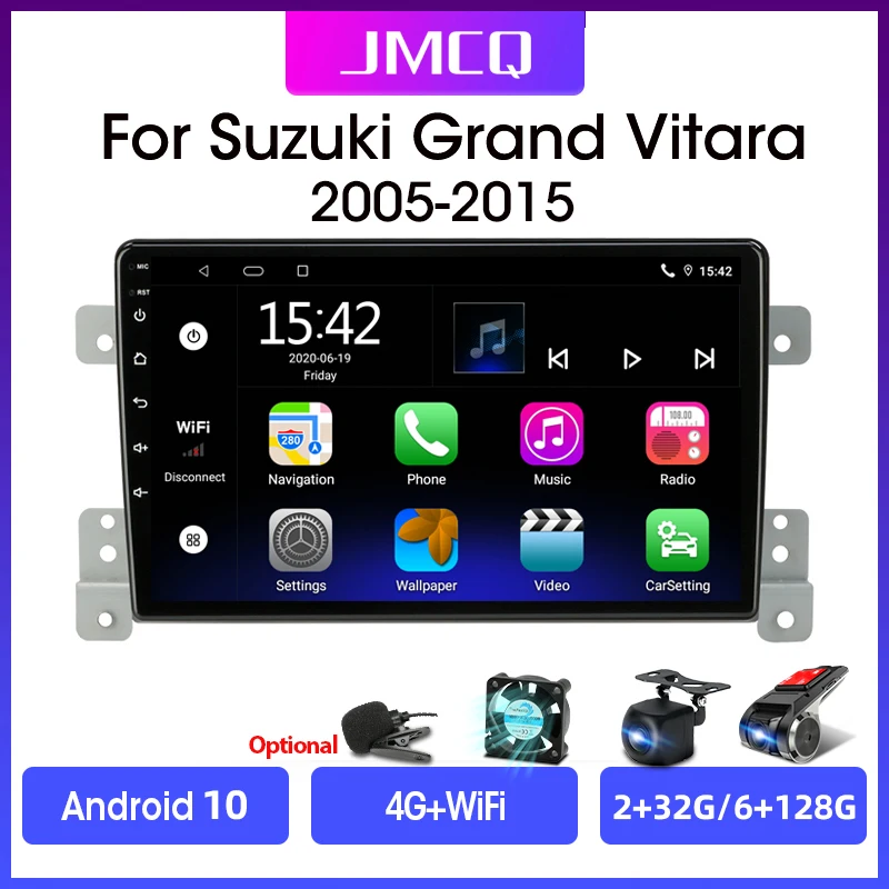 Автомагнитола JMCQ, мультимедийный Видеоплейер на Android, с 9 "экраном, 4G +, Wi-Fi, DSP, GPS, для Suzuki Grand Vitara 2005-2015, типоразмер 2DIN