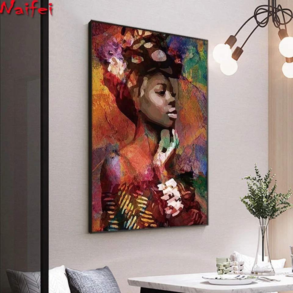 Африканская Женская Алмазная вышивка, полный комплект, 5 d Алмазная мозаика, полностью квадратная круглая дрель, алмазная живопись, люди, девушка, декор для комнаты, стены