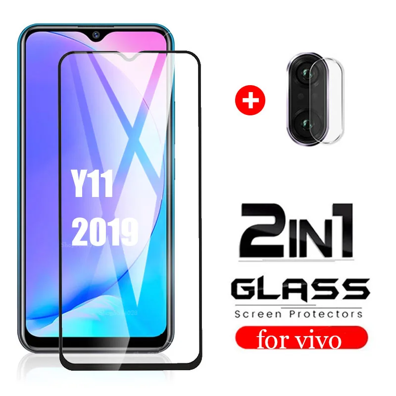 2в1 полное покрытие экрана протектор для vivo Y11 2019 закаленное стекло объектива камеры стекло для Vivo y11 vivo y 11 Y 11 защитная пленка