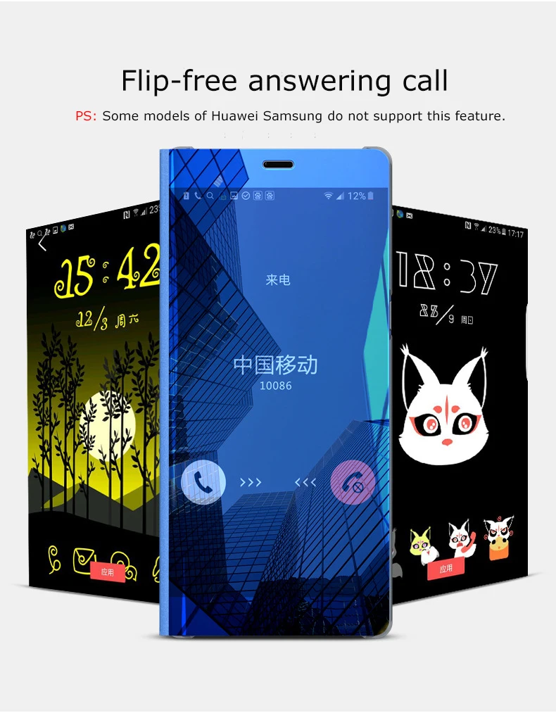 Умный зеркальный чехол-книжка для Honor 10, 8, 9 Lite, 10i, 7A, 7C,...