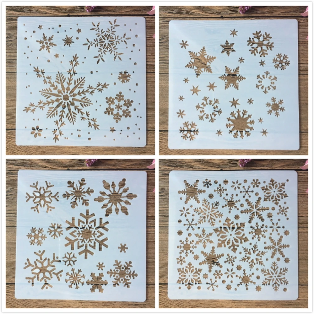 4 шт.компл. 20*20 см снежинка зимние DIY Многослойные трафареты настенная живопись раскраска для скрапбукинга тиснильный альбом декоративный шаблон