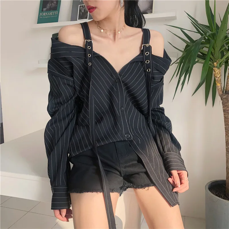 Женская рубашка с открытыми плечами NCLAGEN, однобортная Повседневная Уличная рубашка с длинным рукавом, на осень и весну