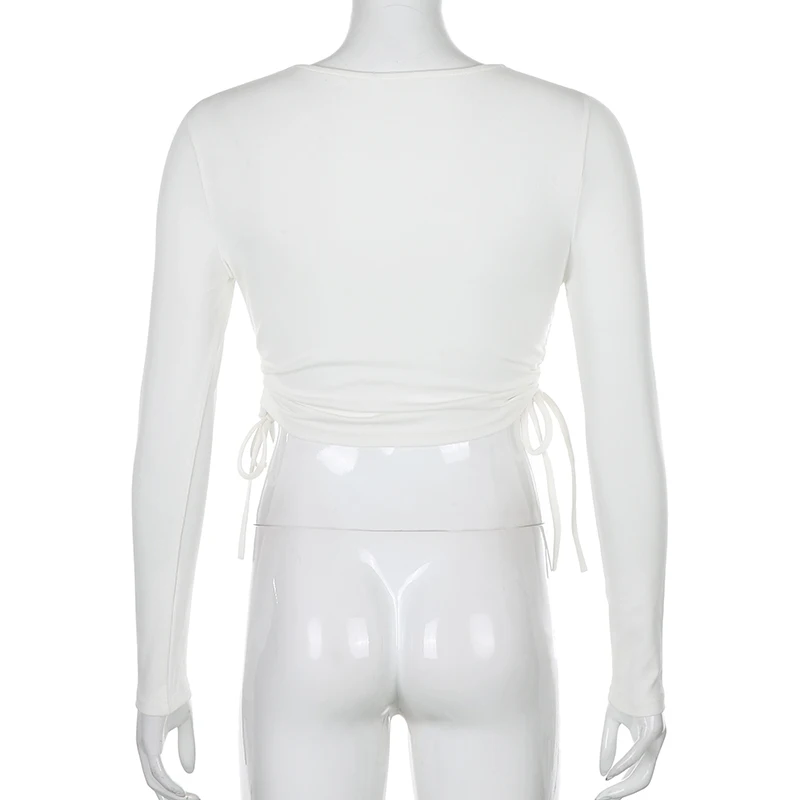 Artsu Повседневная Базовая футболка с рюшами на завязках женская черно-белая укороченная футболка с длинным рукавом женская осенняя одежда футболка