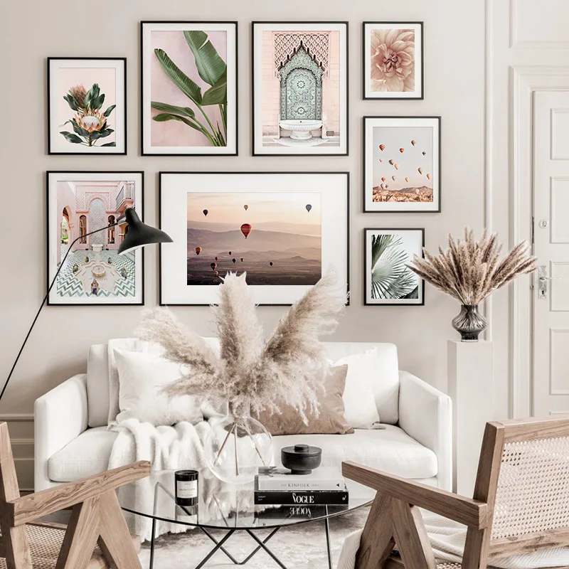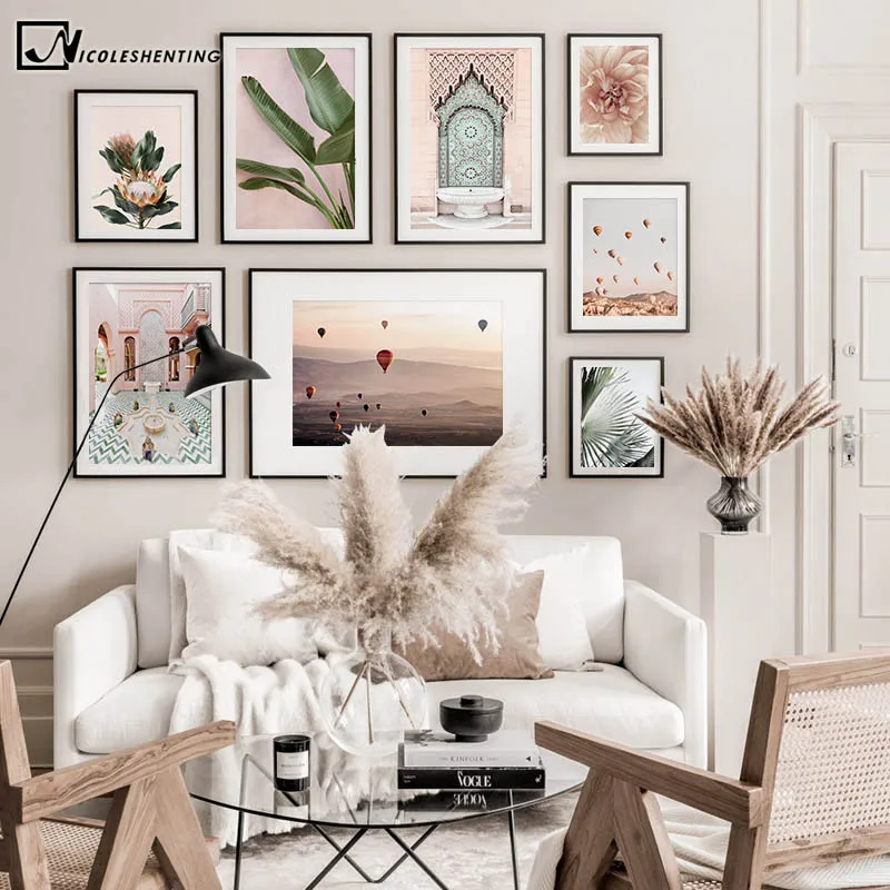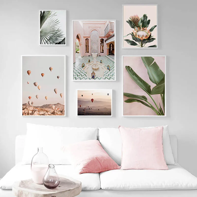 Марокканский настенный постер на холсте с розовым лотосом ворота ла...