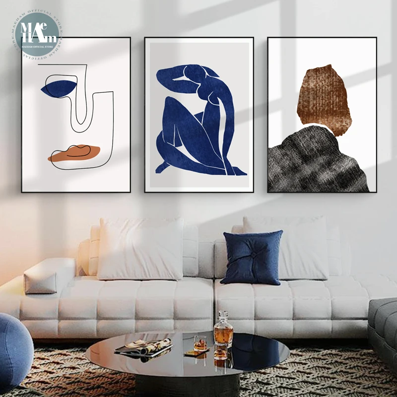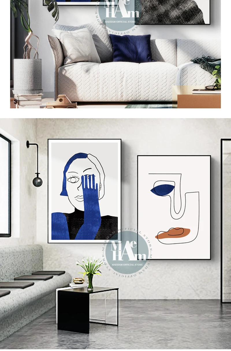 Абстрактные синие фигурки настенная живопись холст Геометрические линии печать плакат Настенная картина для гостиной скандинавский Декор