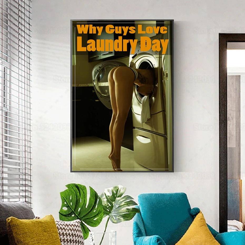 Плакат с сексуальной леди, почему парни любят стирку, Картина на холсте, Сексуальная Поза девушки, печать, декоративная картина