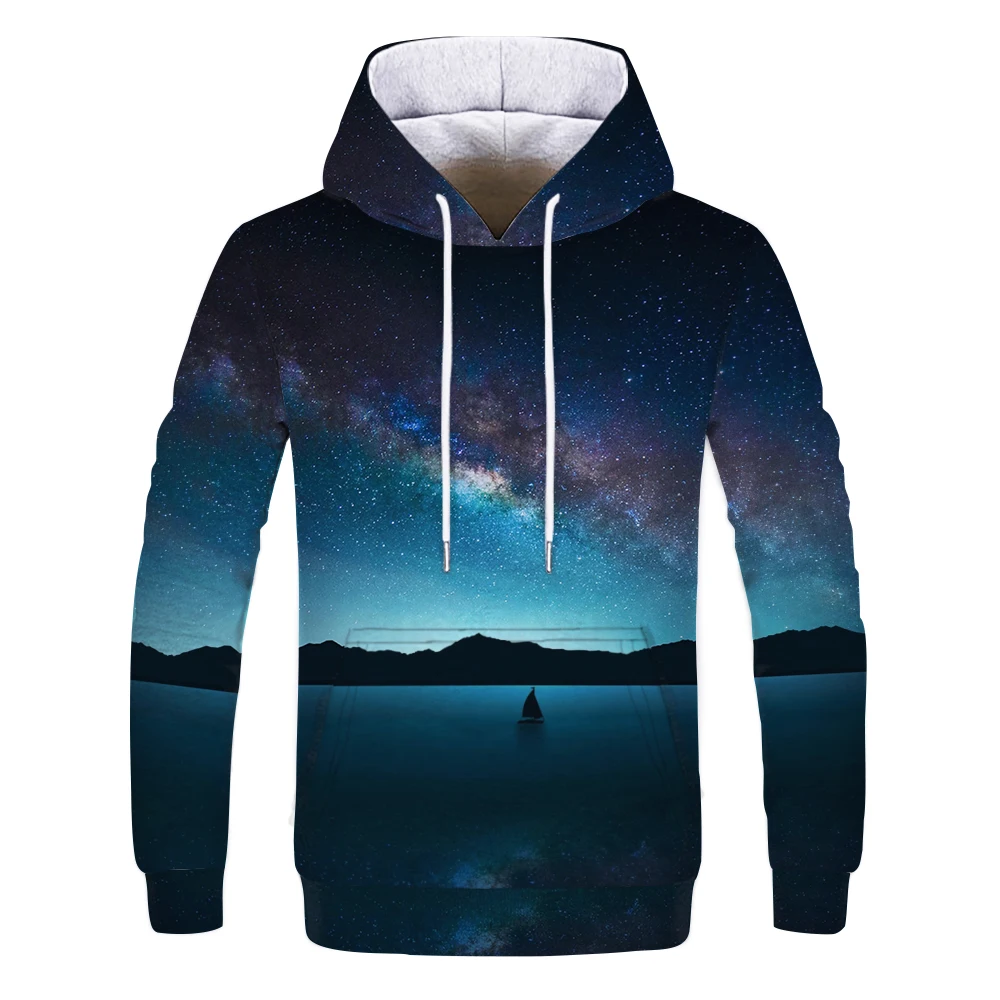Мужская толстовка с капюшоном, Повседневная Толстовка большого размера с 3d-изображением звездного неба, 2020