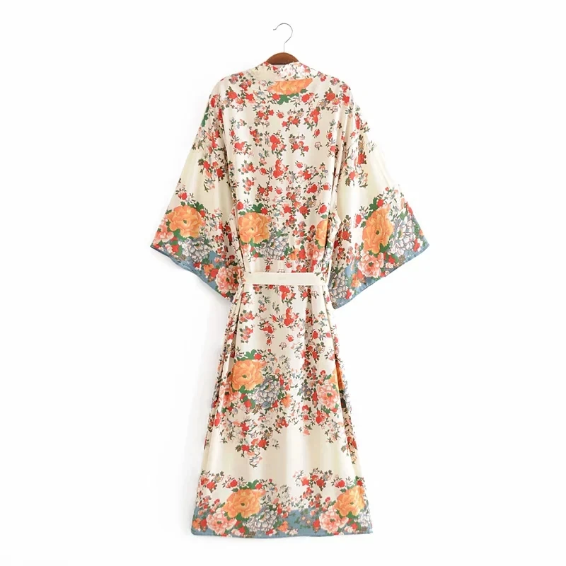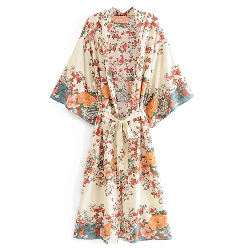 Женское пляжное кимоно с цветочным принтом, в стиле бохо