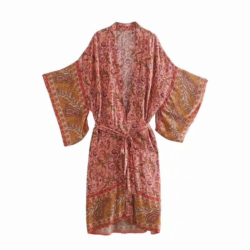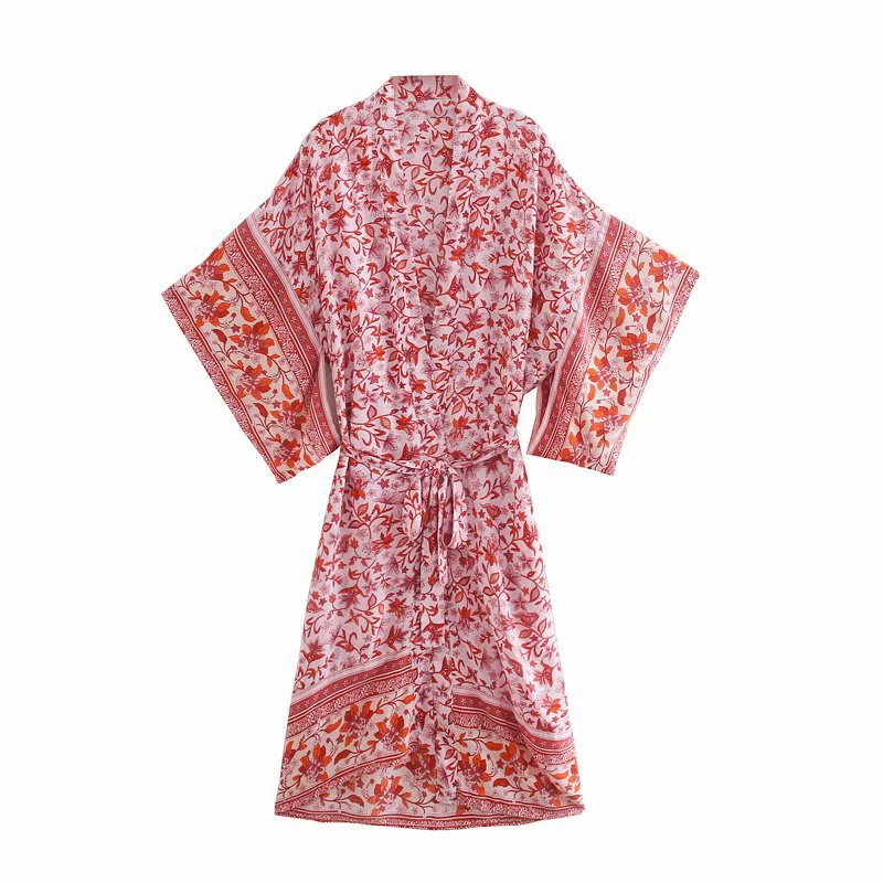 Женское винтажное пляжное кимоно с цветочным принтом и рукавами лет...
