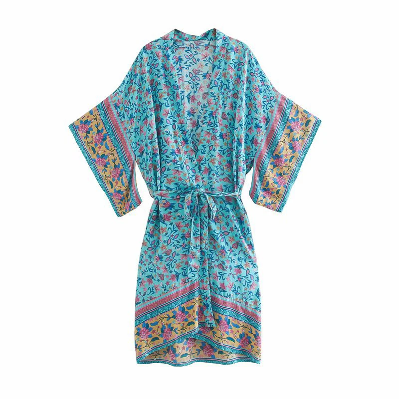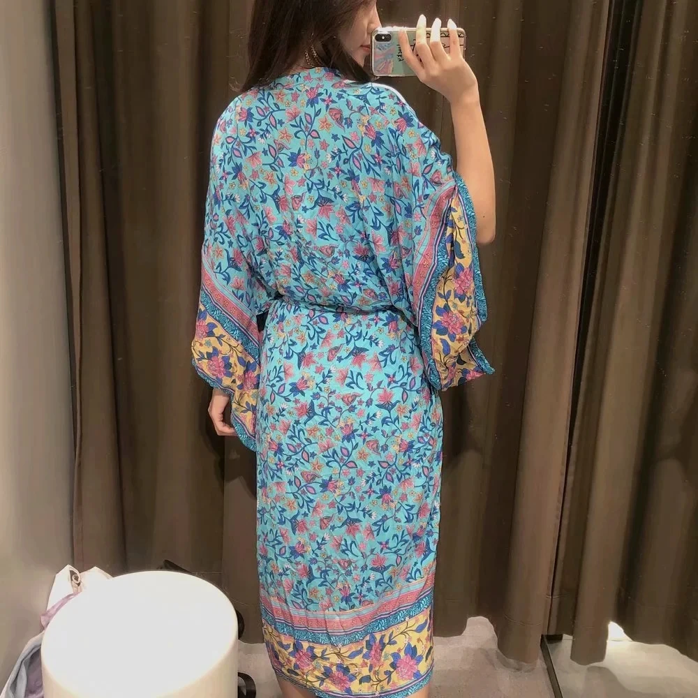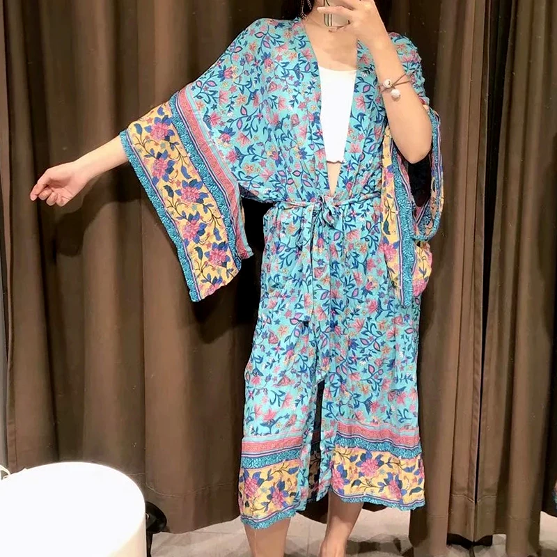 AYUALIN из хлопчатобумажной ткани в цветочек, платье с красочными принтами cover up кимоно с длинным рукавом блузки рубашки в винтажном стиле, в стиле Бохо пляжное летнее кардиган Туника vestidos