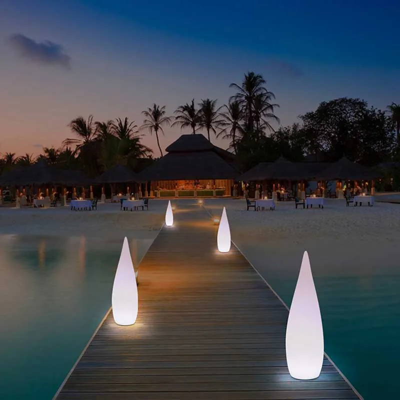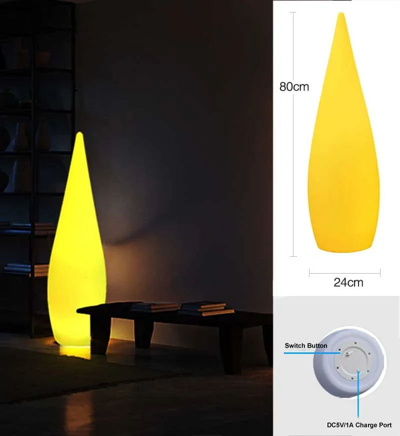 RGBW светодиодная светящаяся напольная Ландшафтная лампа в виде капли воды для помещений/улицы светодиодная светящаяся мебель Полностью беспроводной 6 ~ 10 часов автономной работы Перезаряжаемая батарея с временем зарядки всего 3-6 часов Срок службы 50000 часов Поставляется с зарядным устройством и пультом дистанционного управления Дальность дистанционного управления более 20 метров Водонепроницаемый, долговечный, прочный и простой в обслуживании Доступны размеры на заказ с индивидуальным дизайном и выгравированными логотипами Выходное напряжение 100-240 В Сертификация CE и Rosh Мы приветствуем заказы OEM Применение: Сделайте свое место Роскошная сверкающая: 1 Ресторан или столовая 2 дома или сада 3 цветка кабаре 4 ночной клуб, ночное шоу 5 отелей/кафе, вечевечерние в помещении и так далее.