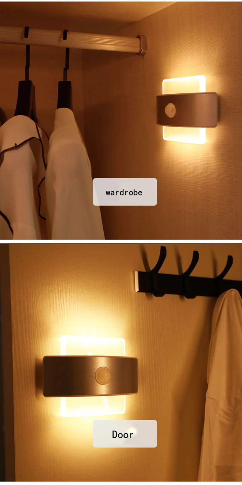 Светодиодный инфракрасный пассивный инфракрасный датчик движения, ночник, беспроводной светодиодный светильник льник, может автоматически включать/выключать детский проход, лестницу, стену, холодильник