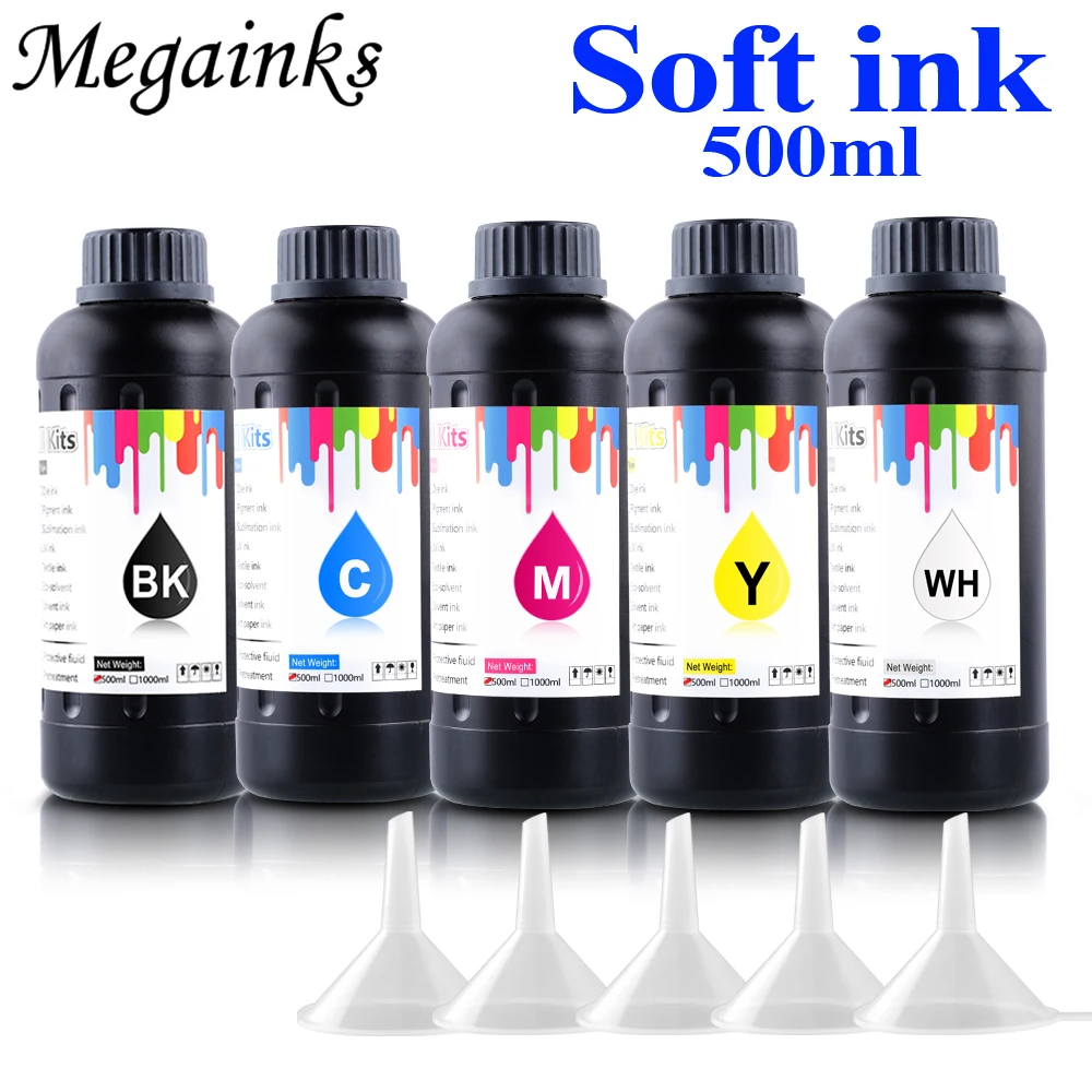 МягкиеЖесткие светодиодные УФ-чернила 5 видов цветов 500 мл для Epson DX4 DX5 DX6 DX7, печатающая головка для планшетных струйных принтеров Epson Roland Mimaki Mutoh