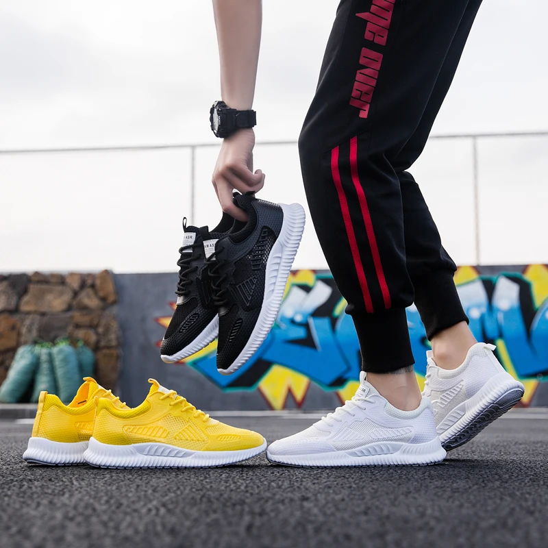 Кроссовки мужские сетчатые легкие, дышащие, Повседневная прогулочная обувь, желтые, черные, белые