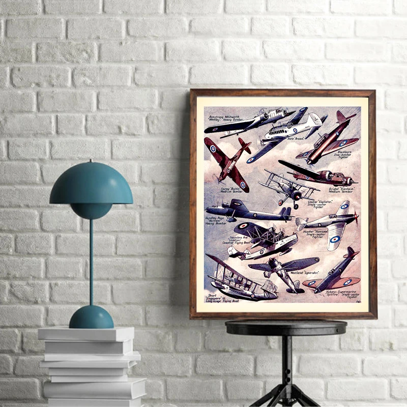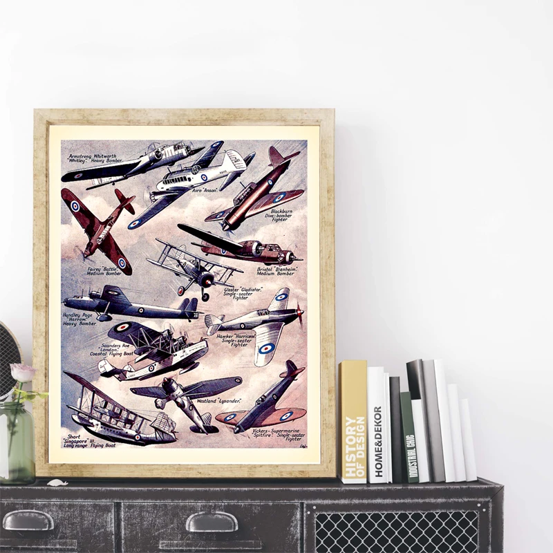 1930s Британский ВИНТАЖНЫЙ ПЛАКАТ с самолетиками, фотография самолета, печать истории авиации, настенная живопись, холст, картина, домашний декор
