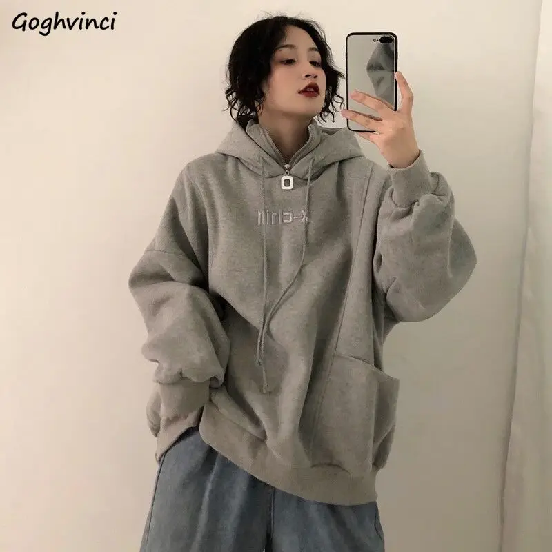 С капюшоном толстовки женские свободные молнии водолазка Harajuku Зимние толстовки с капюшоном женские утолщенные повседневные BF корейский стиль Ulzzang