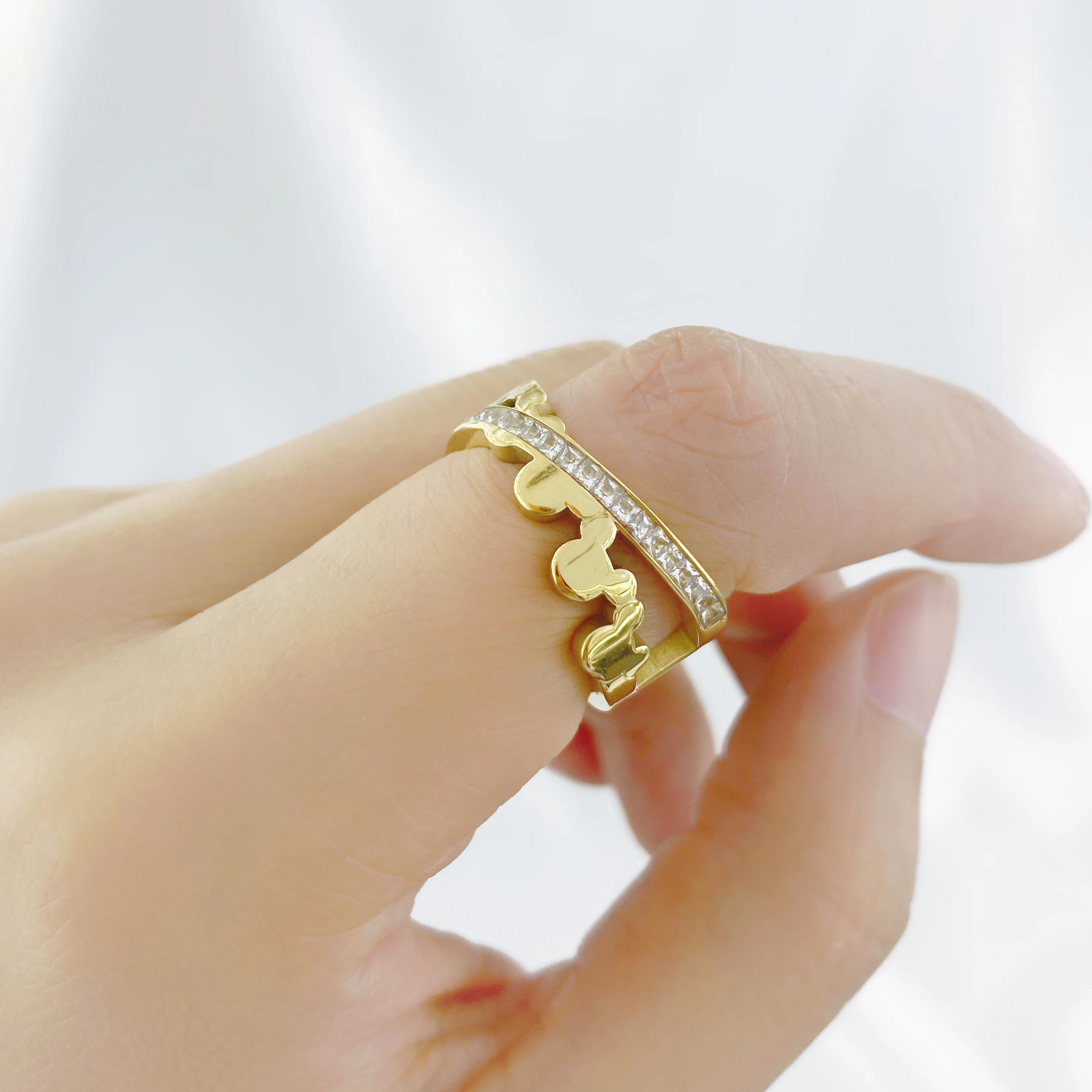 Кавайная одежда, с героями мультфильмов, для мыши кольцо из титана и стали цепочка кольцо, инкрустированное стразами модные трендовые женские ювелирные изделия подарок на день рождения