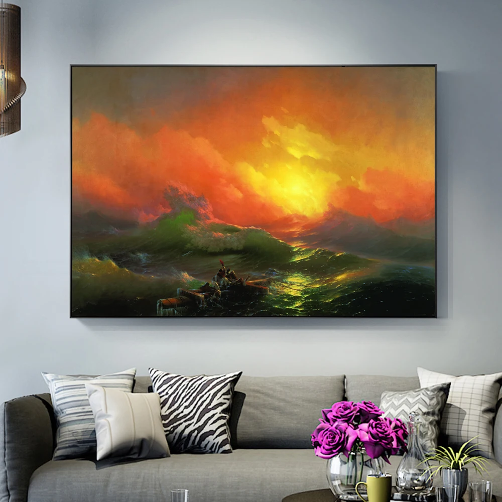 Картина на холсте с изображением знаменитой русской девятых волн Ивана айваззовского, Классические Постеры с морским пейзажем и печать на стене, картина для декора