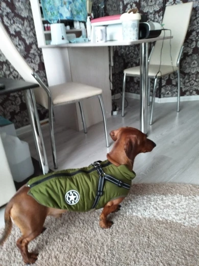 куртка качественная. внутри флис белого цвета, думаю, это совсем не практично. при выборе размера, опиралась на отзывы. на таксу стандарт 12.5 кг размер xxl оказался в груди впритык. думаю, размер xxxl будет лучше. хотя с таксами не угадаешь. когда великовата, тоже неудобно из-за низкой посадки пса .попробуем пока носить эту. если уж совсем неудобно пëселю будет, буду заказывать большего размера. с продавцом не общалась. заказ доставили за 22 дня.