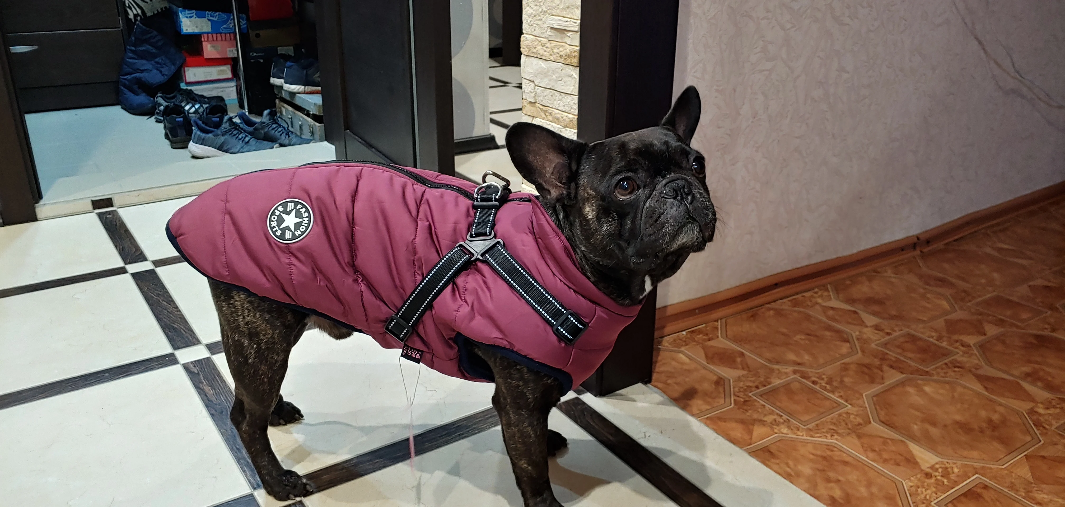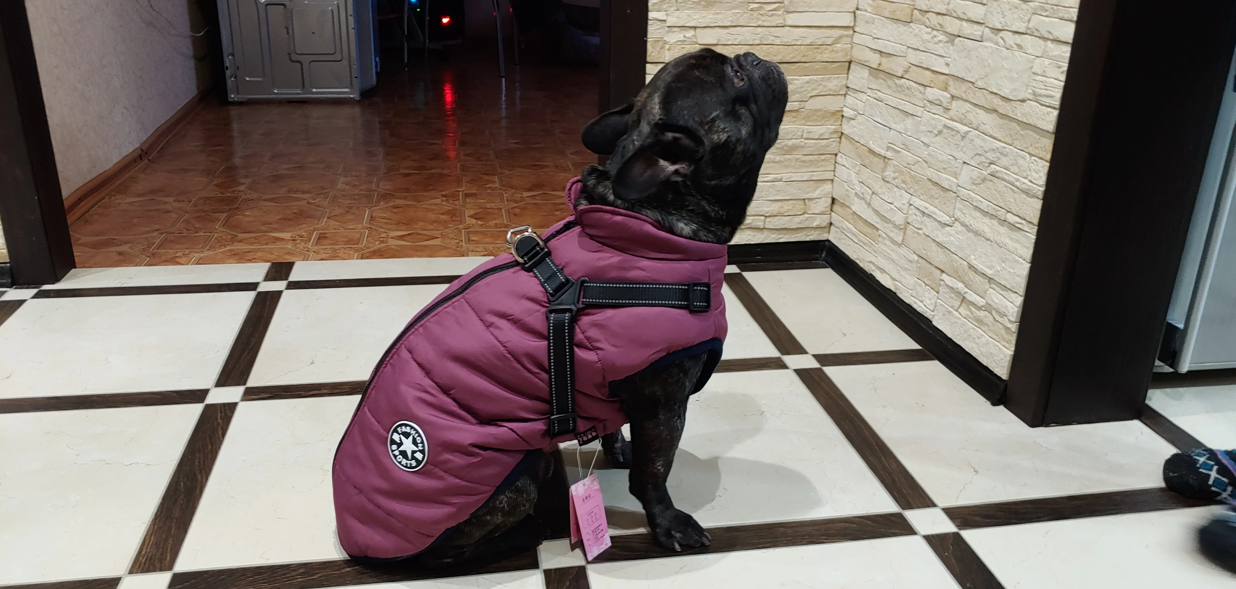 Куртка пришла быстро, сидит отлично. У меня минибультерьер толстенький, размер подошёл идеально.