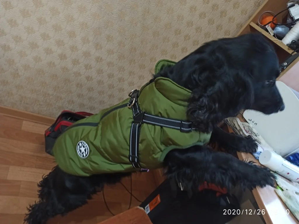 Жилет шёл 1,5 месяца до Москвы. Размер подошёл отлично на папильона, весом 3 кг.
